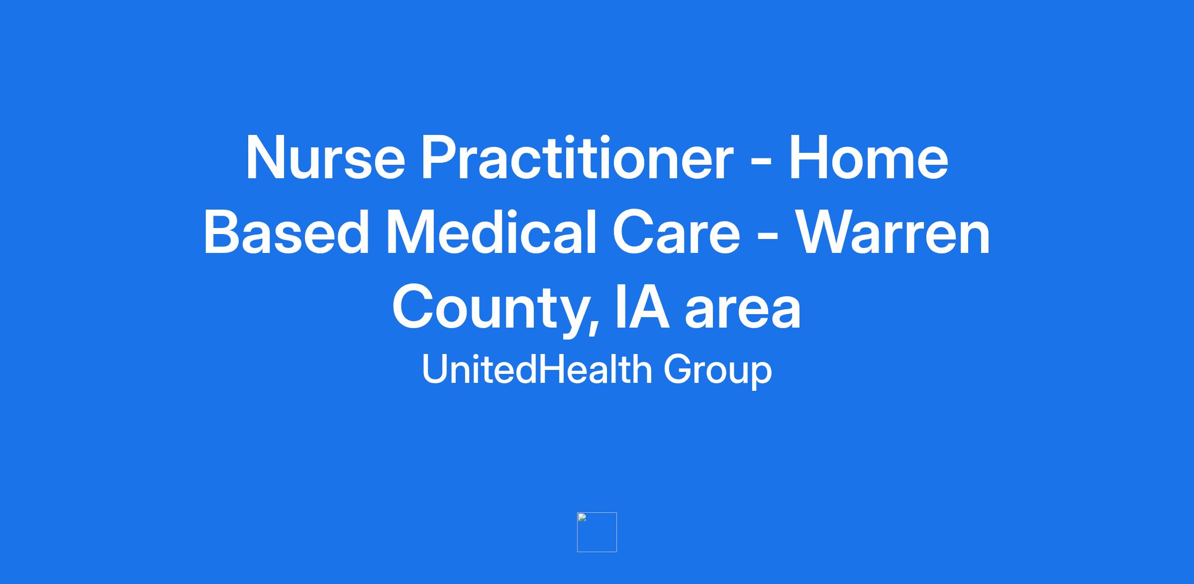 **Home Base Medical Care, part of the Optum family of businesses, is seeking a Nurse Practitioner to join our team in Warren County, IA area. Optum is a clinician-led care organization that is changing the way clinicians work and live. **