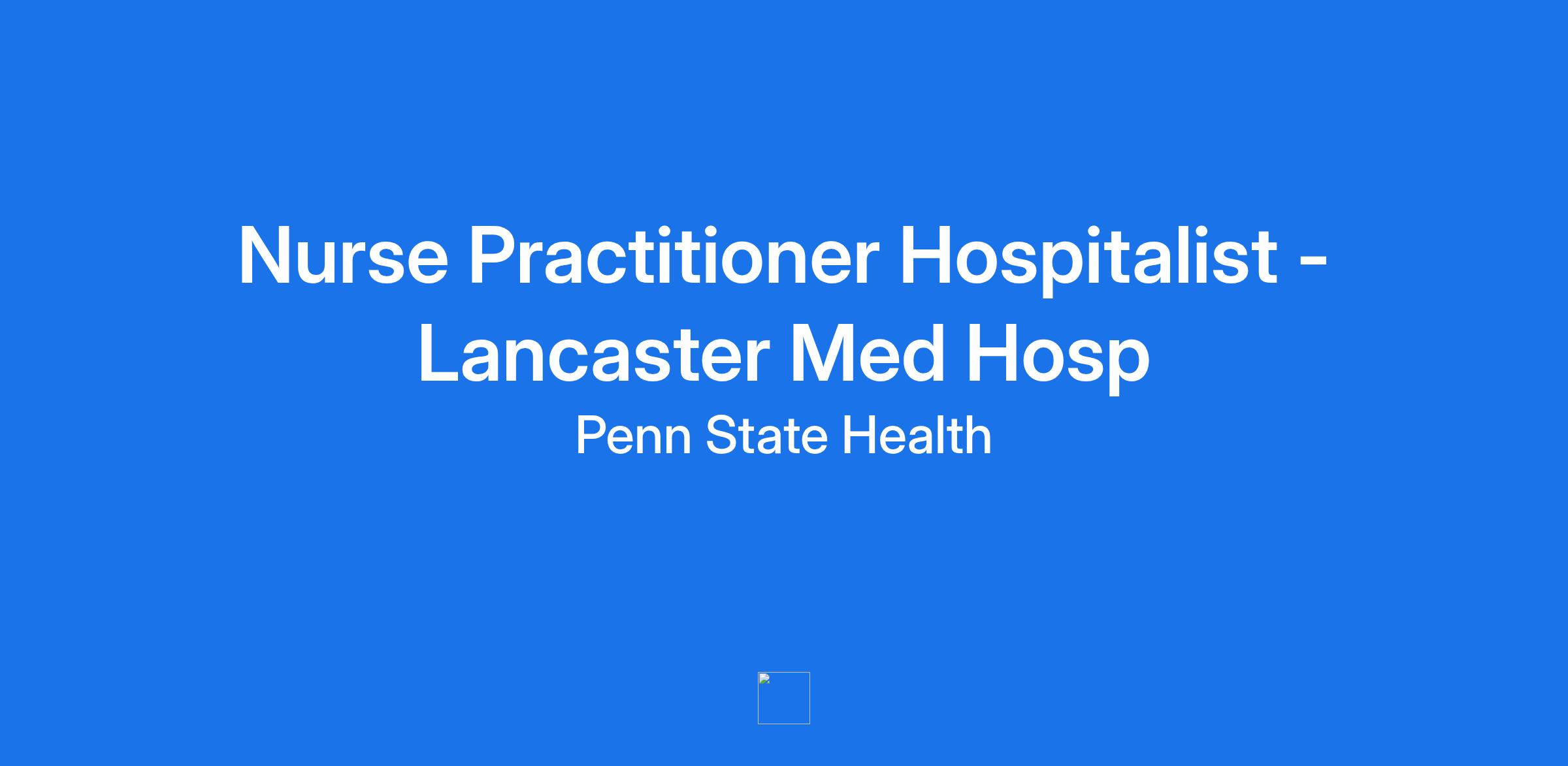 **Position** Nurse Practitioner Hospitalist - Lancaster Med Hosp