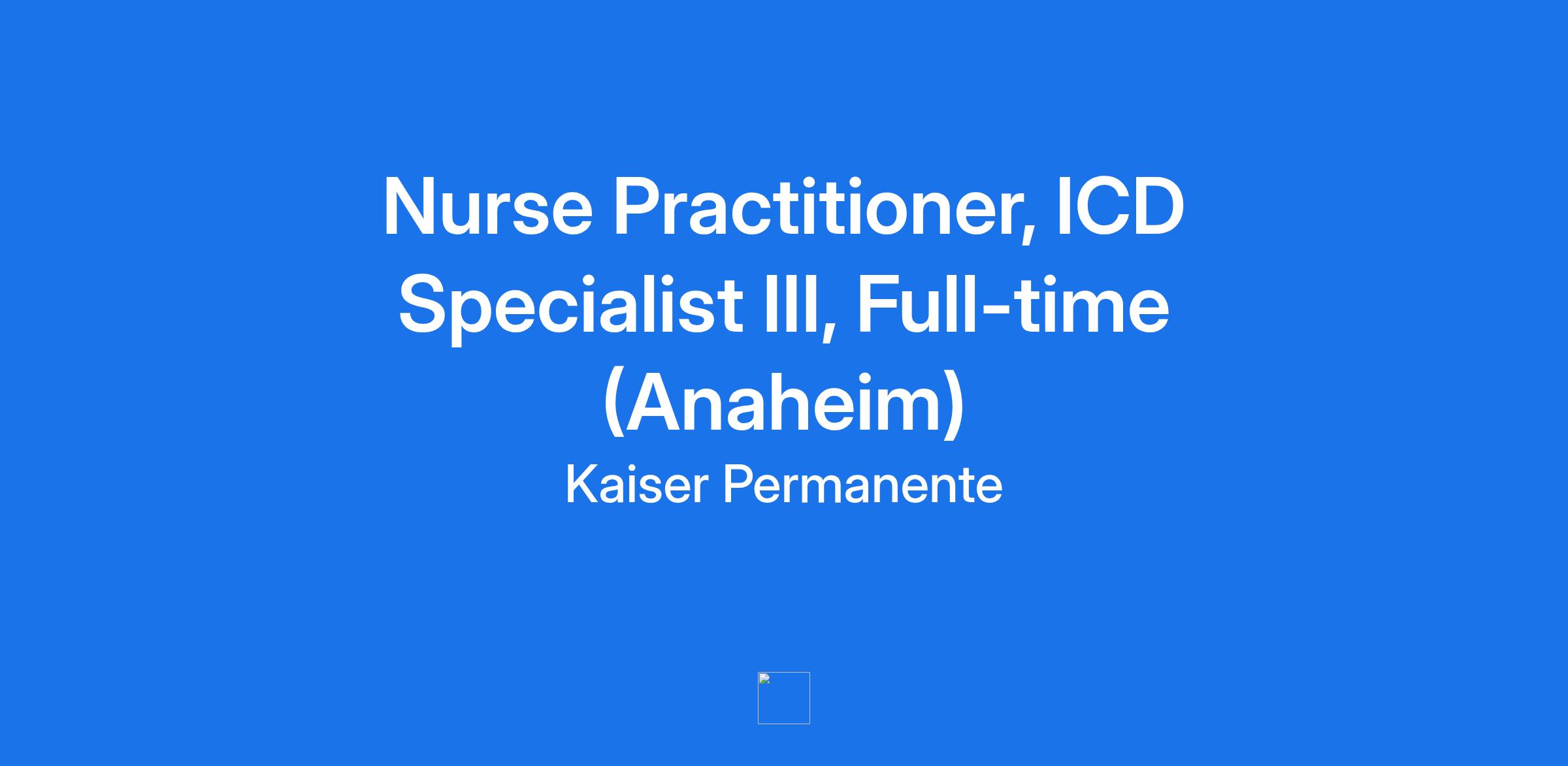 TITLE: Nurse Practitioner, ICD Specialist III, Full-time (Anaheim)