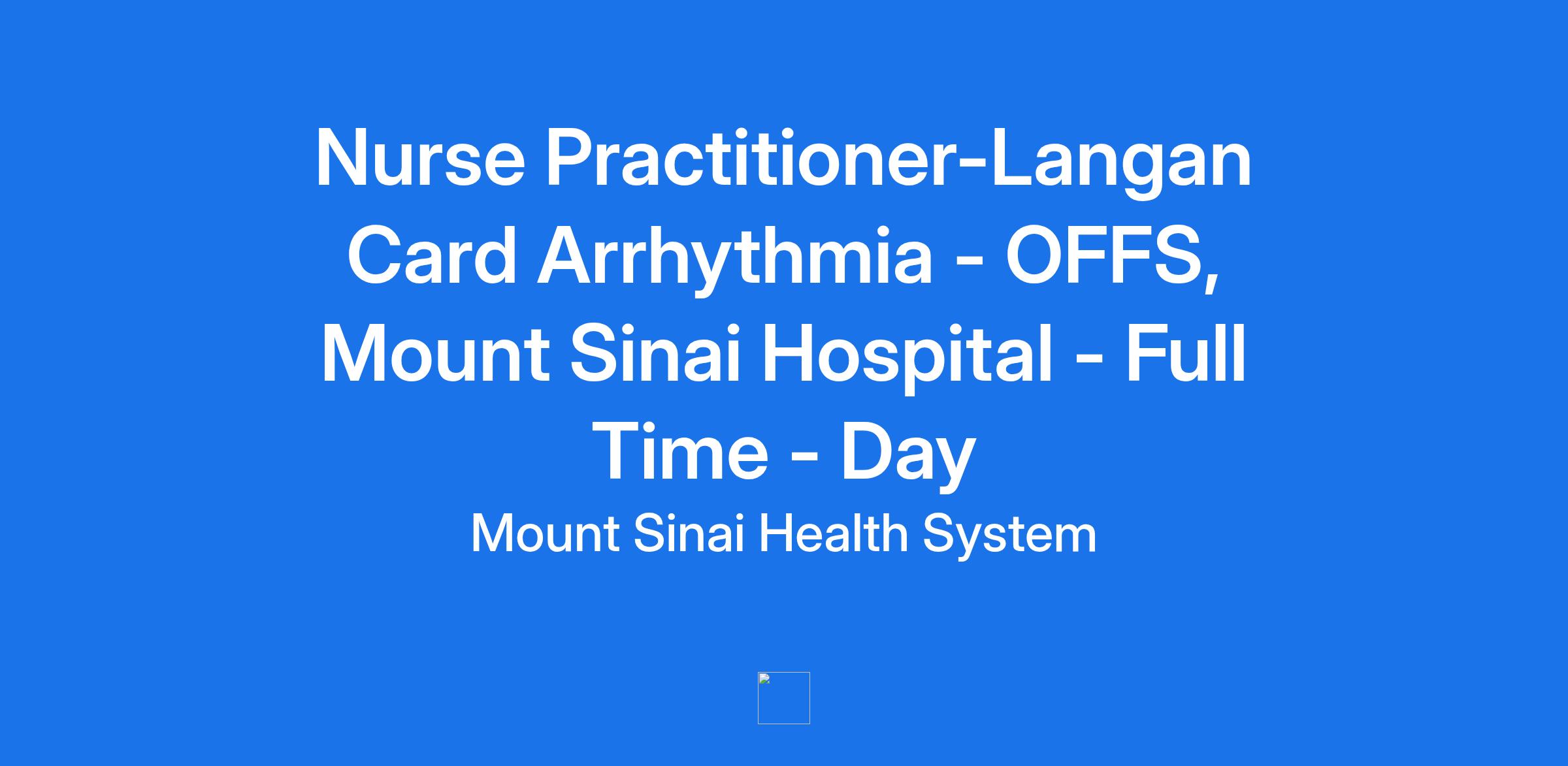**Job Title - Nurse Practitioner-Langan Card Arrhythmia - OFFS, Mount Sinai Hospital - Full Time - Day**