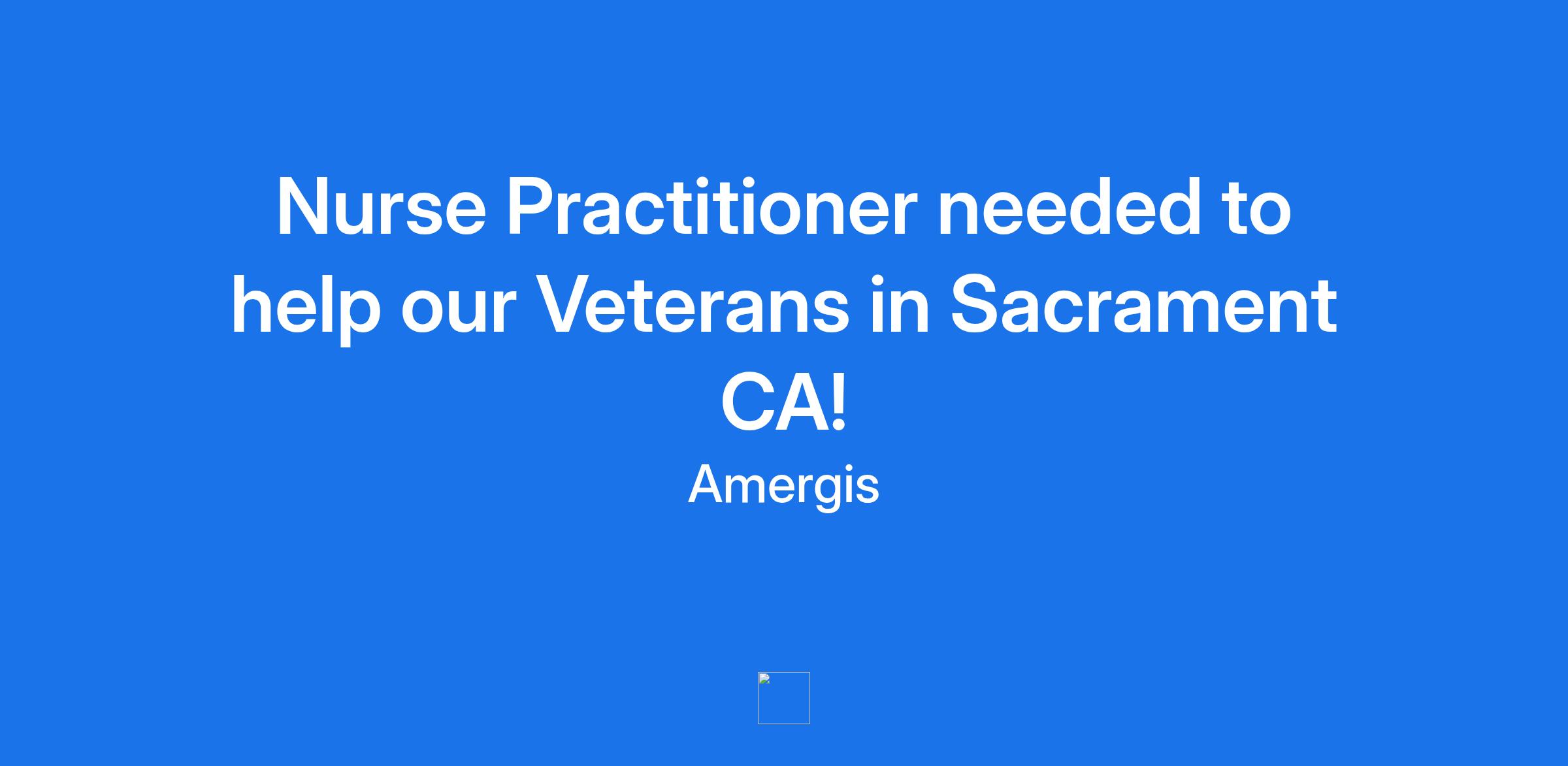 Nurse Practitioner needed to help our Veterans in Sacrament CA!