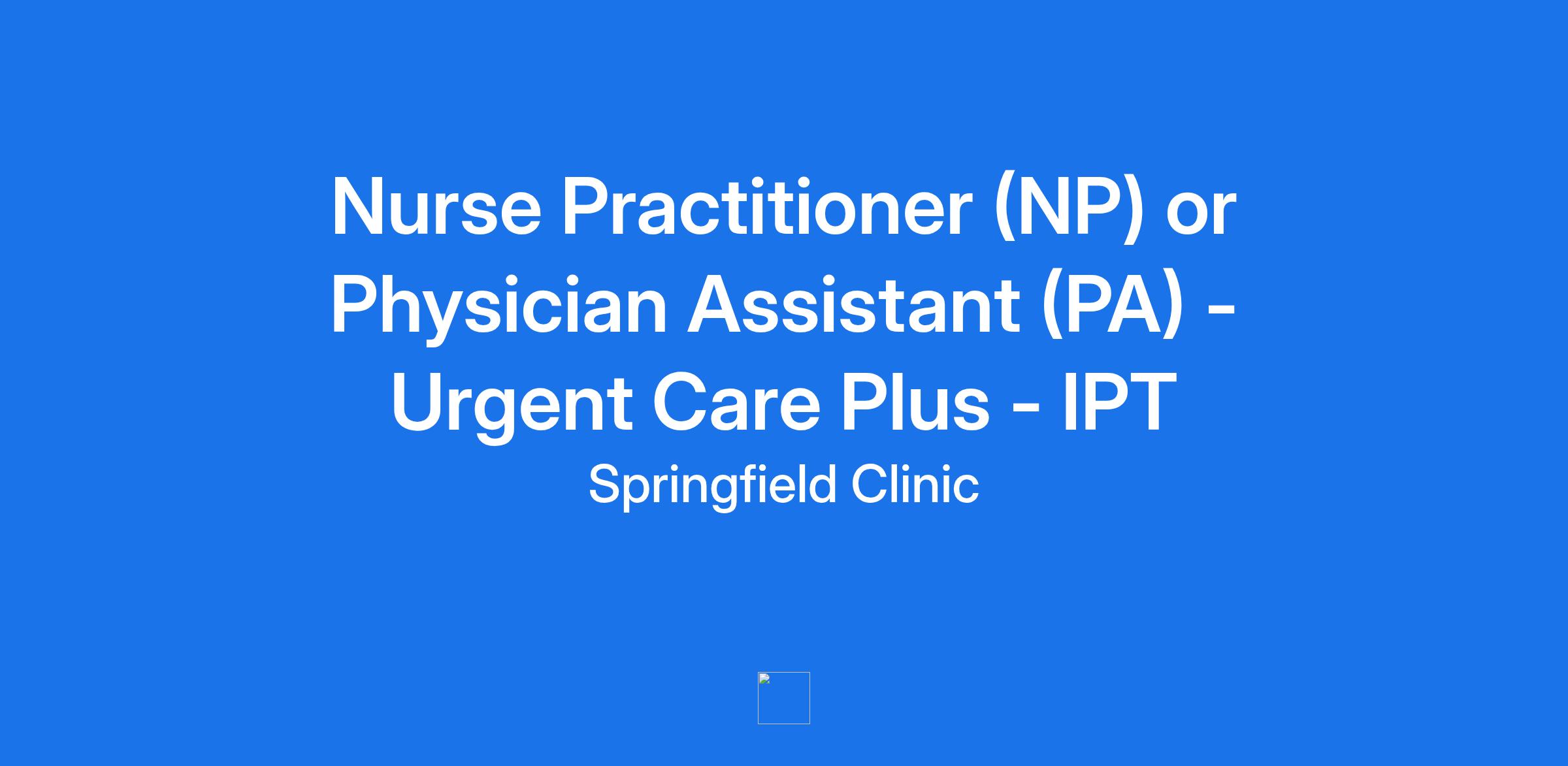 Nurse Practitioner (NP) or Physician Assistant (PA) - Urgent Care Plus - IPT