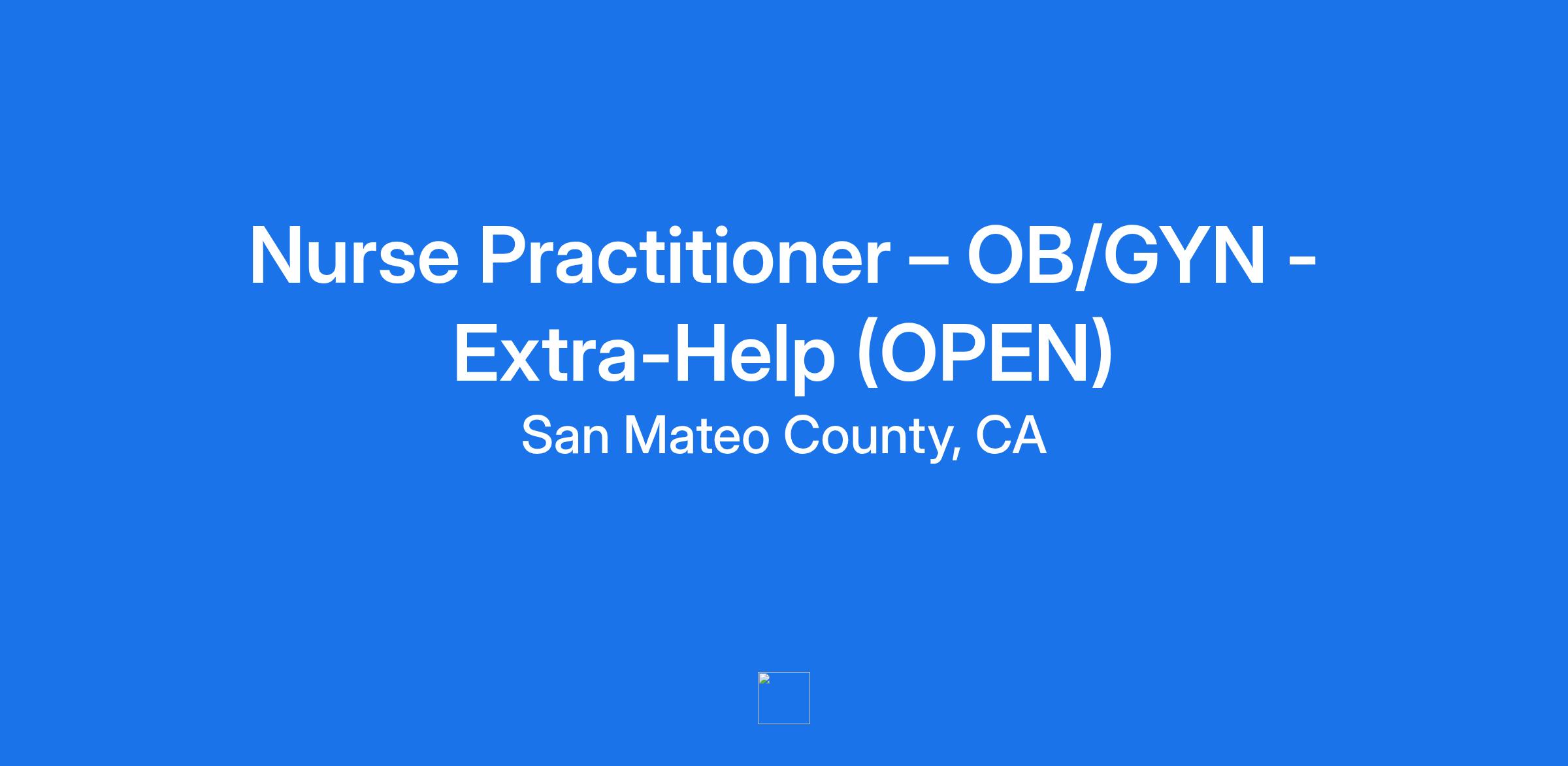 San Mateo Medical Center has an immediate extra-help opening for a Nurse Practitioner in the OB/GYN Clinics in San Mateo, Redwood City and Half Moon Bay.