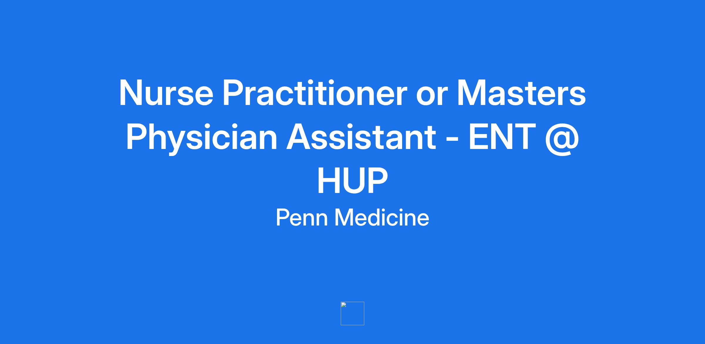 Nurse Practitioner or Masters Physician Assistant - ENT @ HUP