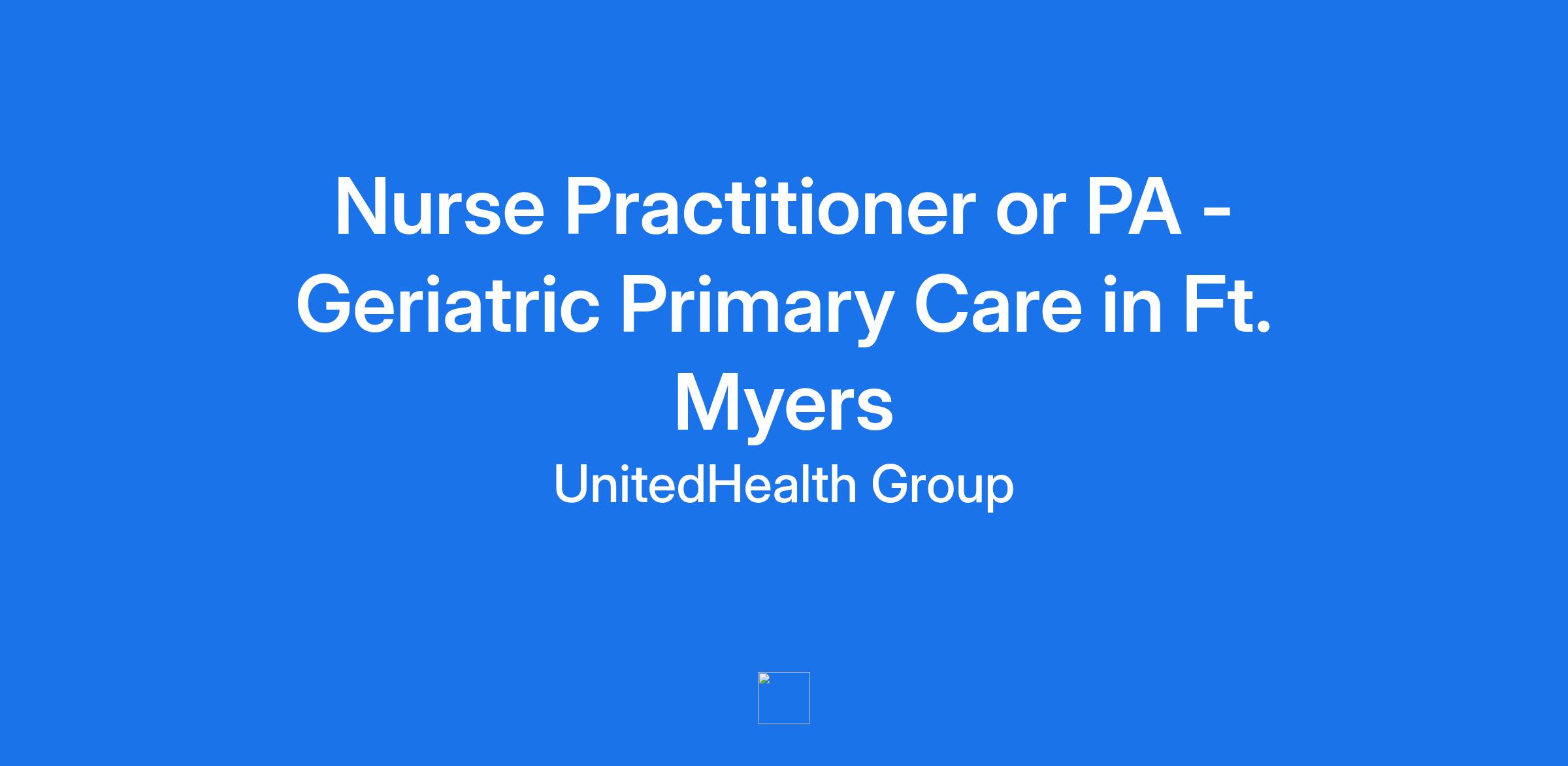 Nurse Practitioner or PA - Geriatric Primary Care in Ft. Myers