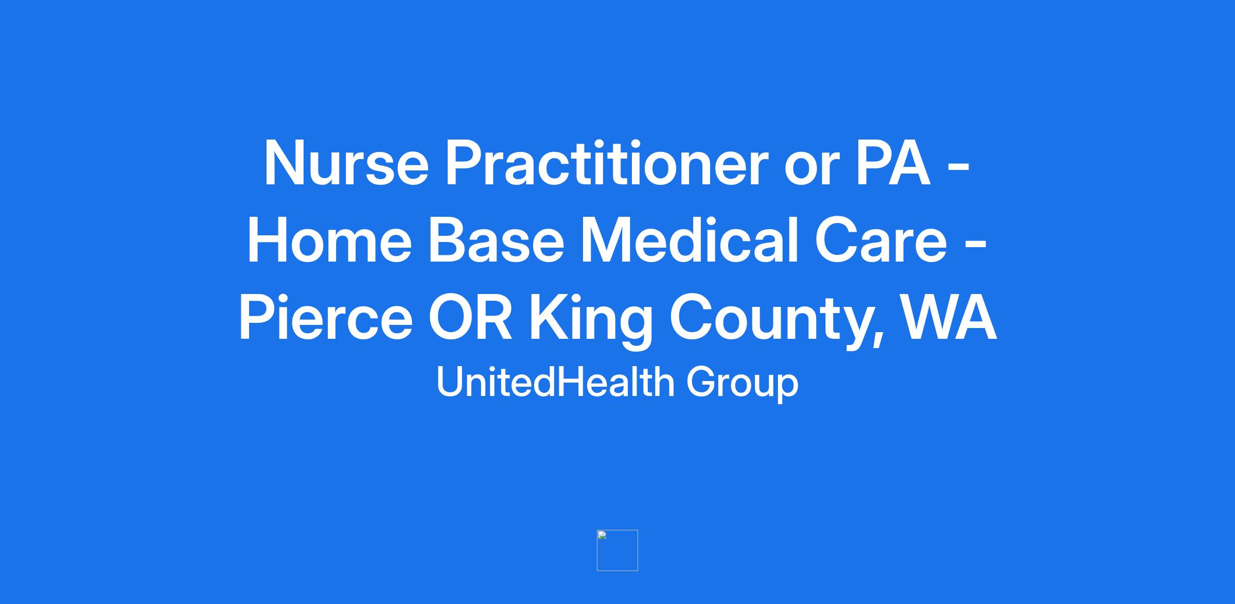 **Home Base Medical Care, part of the Optum family of businesses, is seeking a Nurse Practitioner or Physician Assistant to join our team in Pierce OR King Counties, WA. Optum is a clinician-led care organization that is changing the way clinicians work and live. **
