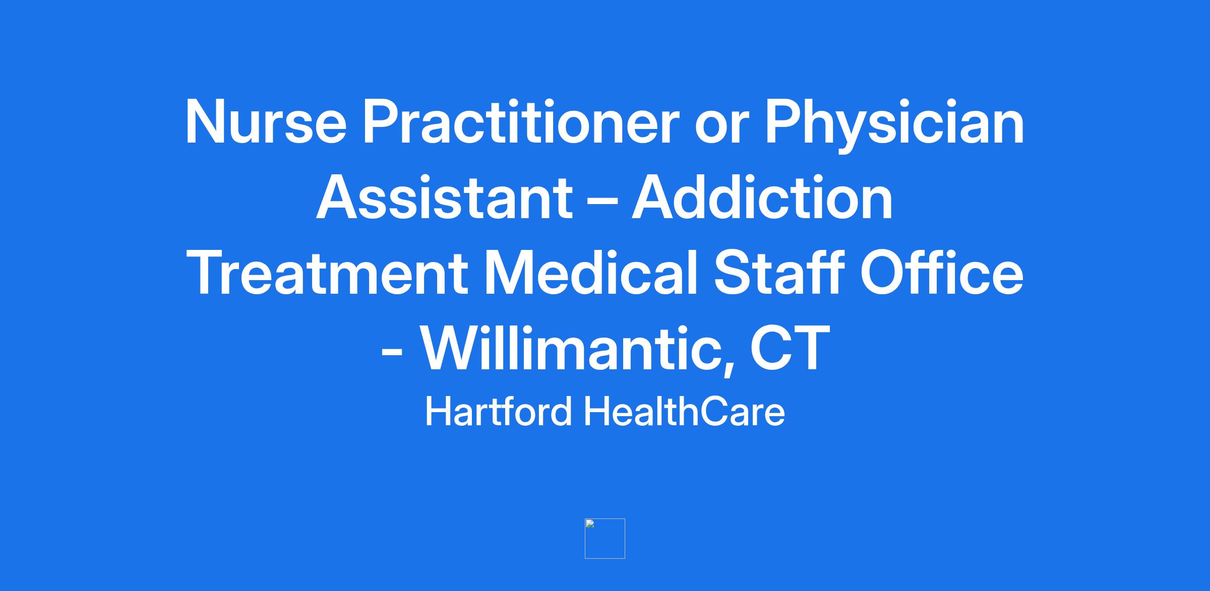 Nurse Practitioner or Physician Assistant – Addiction Treatment Medical Staff Office - Willimantic, CT