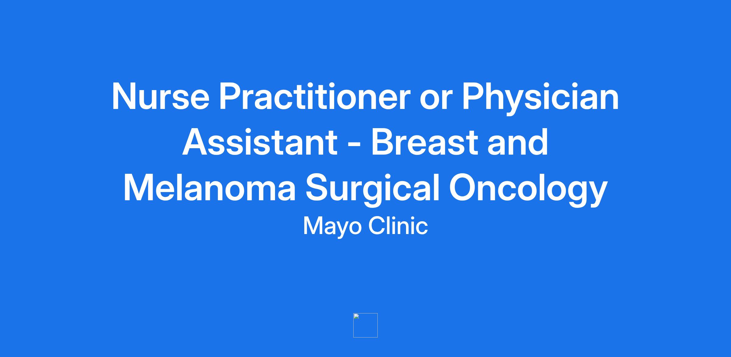 Nurse Practitioner or Physician Assistant - Breast and Melanoma Surgical Oncology