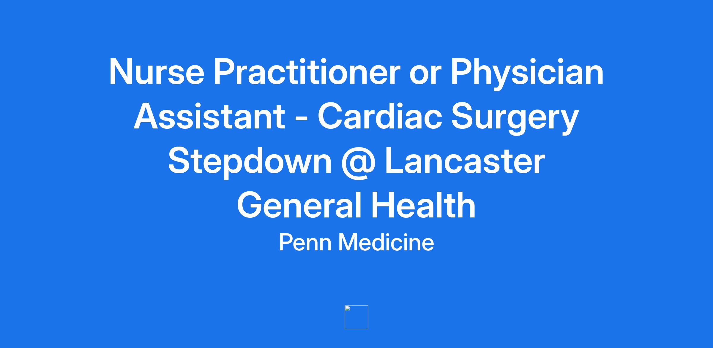 Nurse Practitioner or Physician Assistant - Cardiac Surgery Stepdown @ Lancaster General Health
