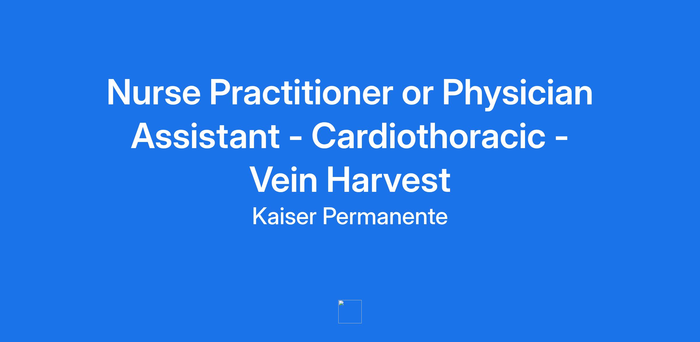 TITLE: Nurse Practitioner or Physician Assistant - Cardiothoracic - Vein Harvest