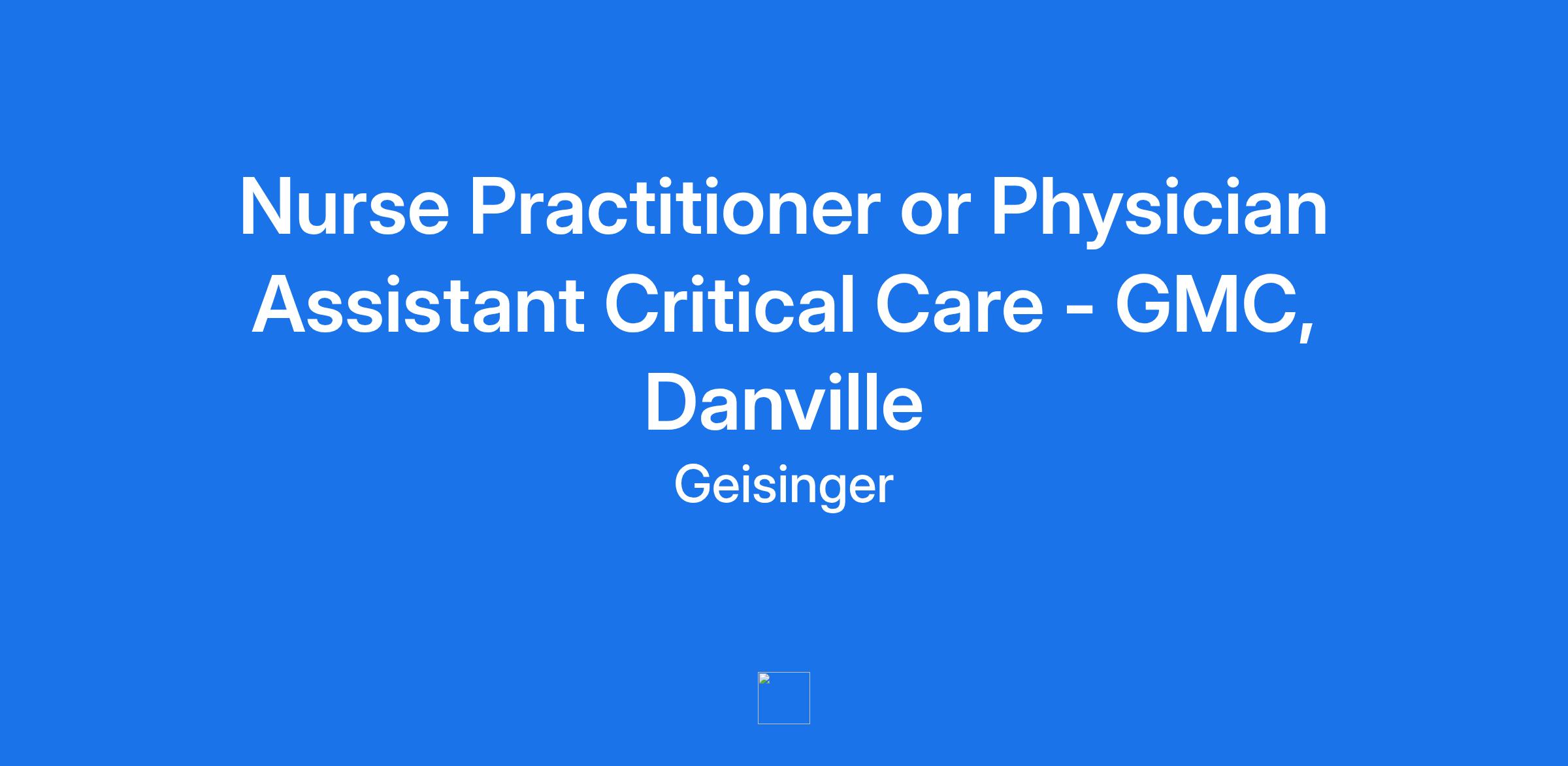 Nurse Practitioner or Physician Assistant Critical Care - GMC, Danville