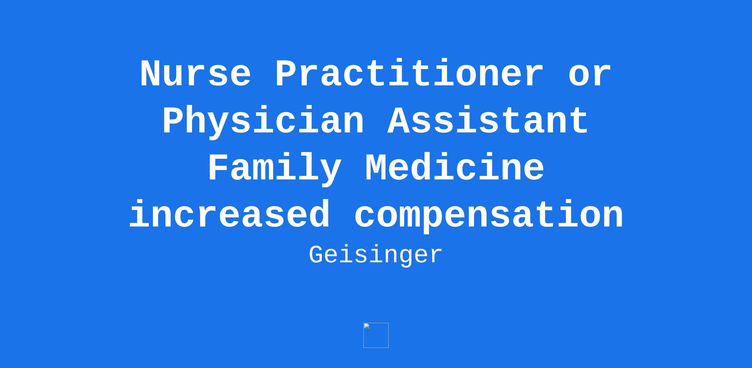 Nurse Practitioner or Physician Assistant Family Medicine increased compensation