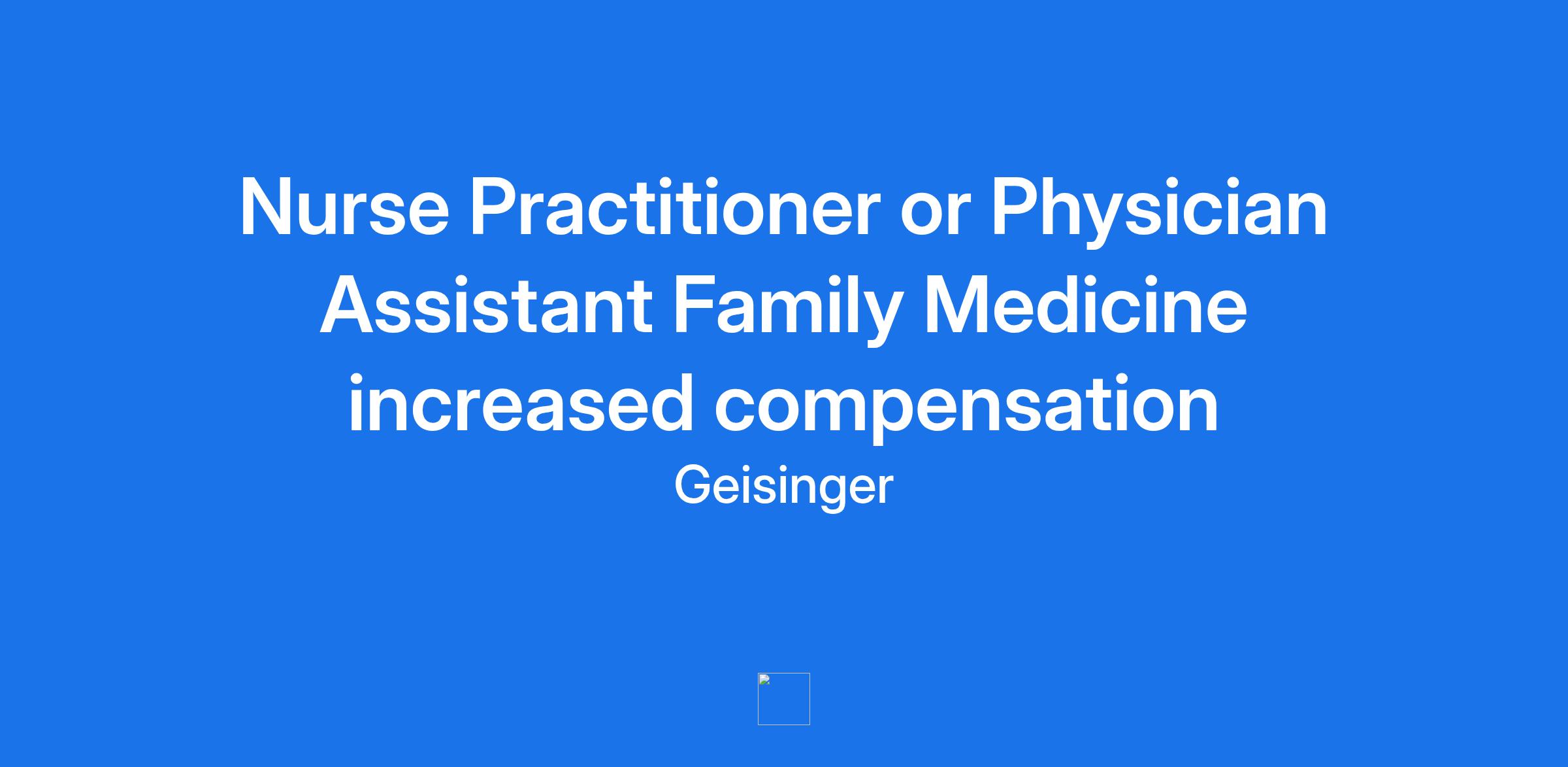 Nurse Practitioner or Physician Assistant Family Medicine increased compensation