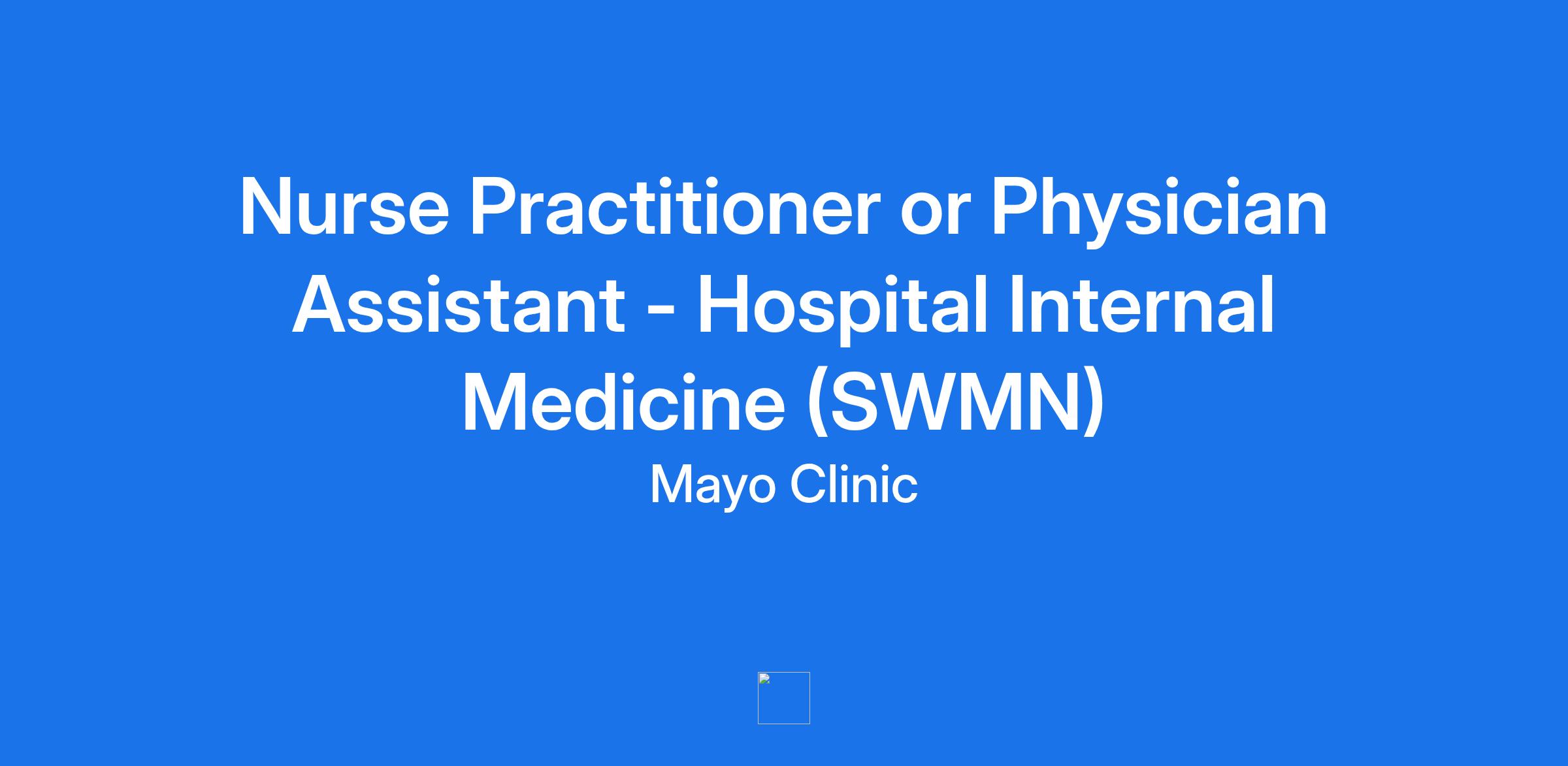 Nurse Practitioner or Physician Assistant - Hospital Internal Medicine (SWMN)