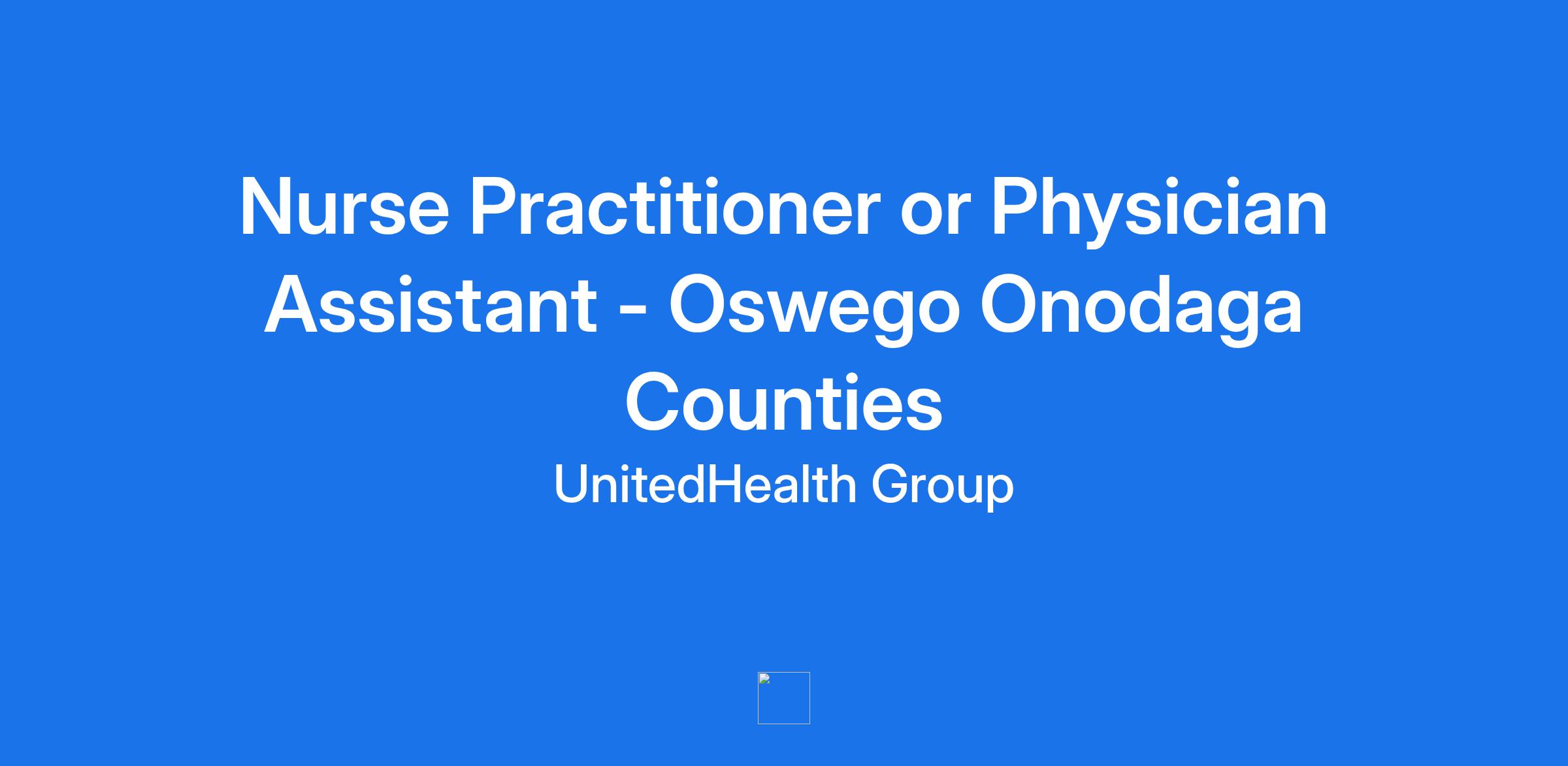 Nurse Practitioner or Physician Assistant - Oswego Onodaga Counties