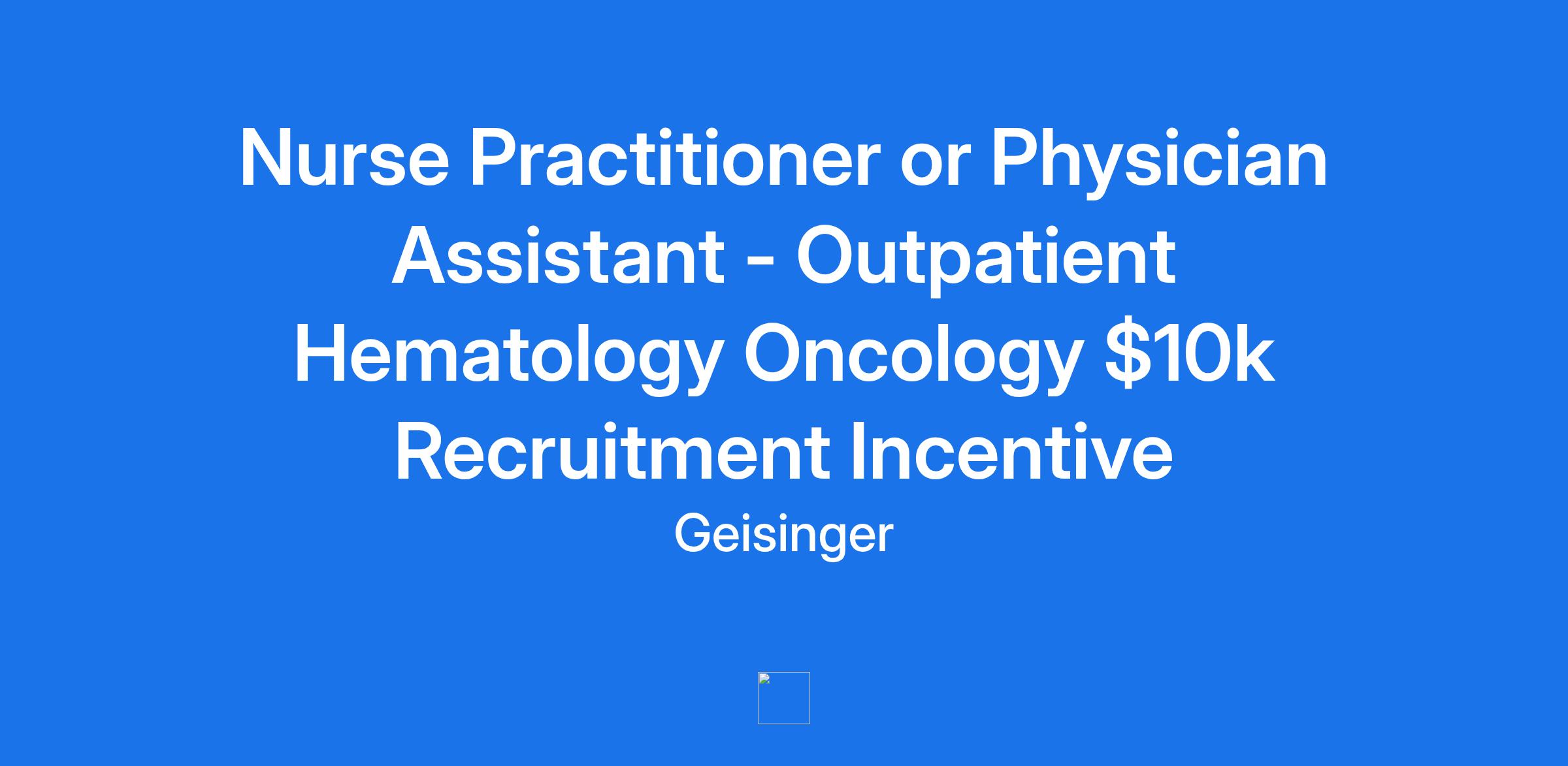 Nurse Practitioner or Physician Assistant - Outpatient Hematology Oncology $10k Recruitment Incentive