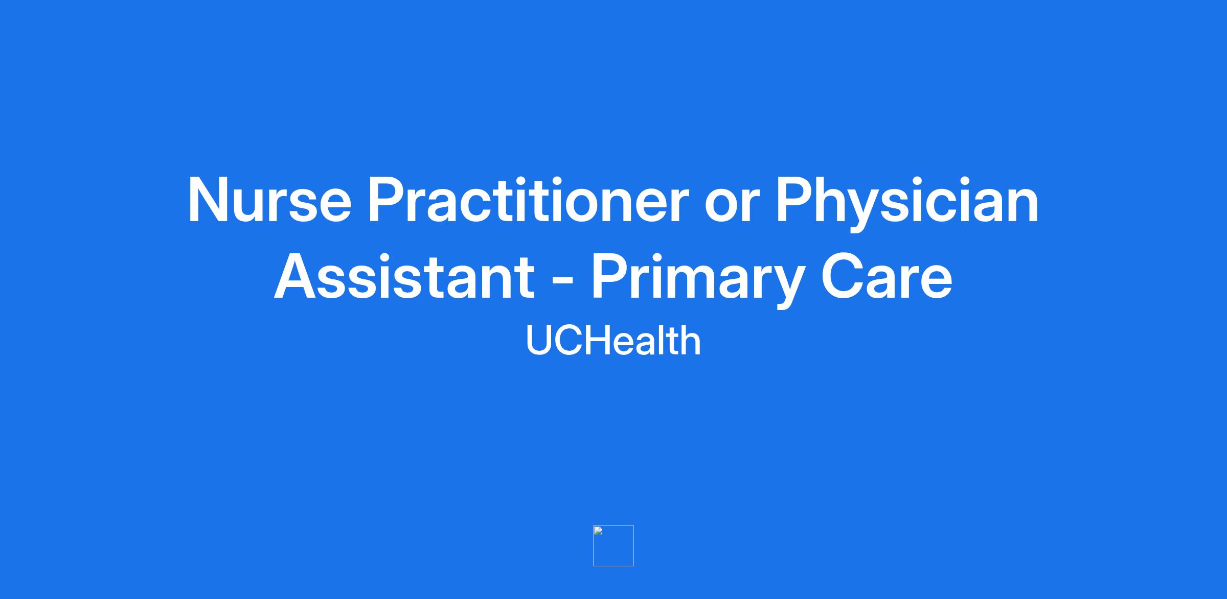 Nurse Practitioner or Physician Assistant - Primary Care