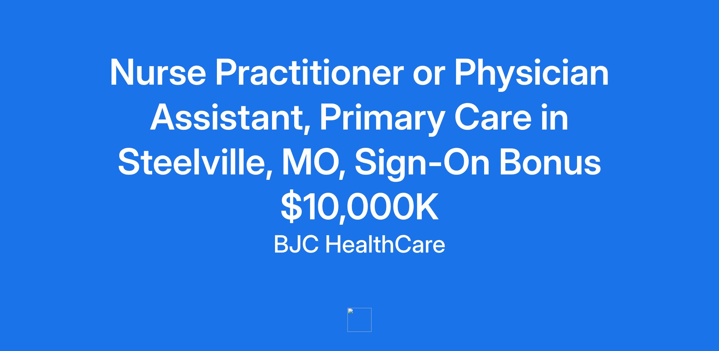 Nurse Practitioner or Physician Assistant, Primary Care in Steelville, MO, Sign-On Bonus $10,000K