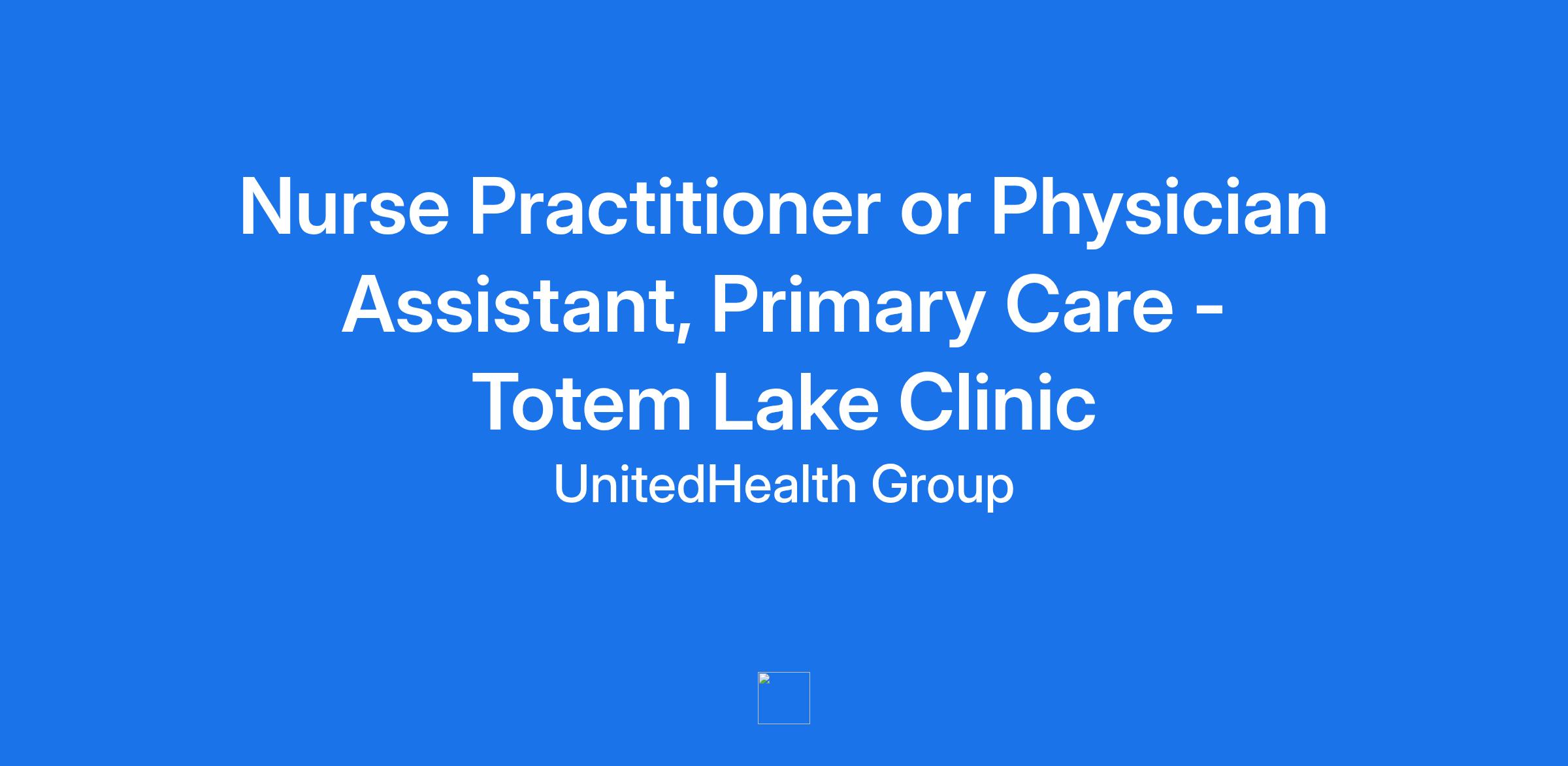 Nurse Practitioner or Physician Assistant, Primary Care - Totem Lake Clinic