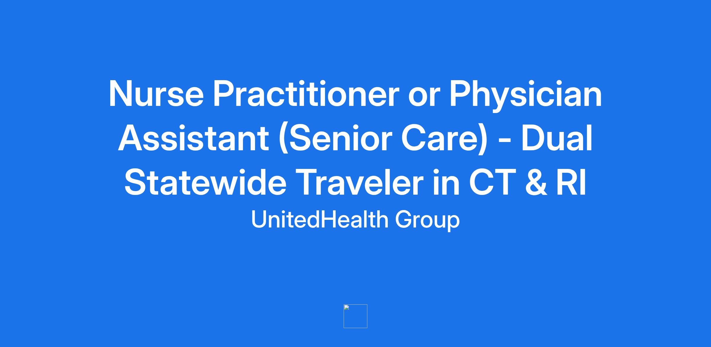 Nurse Practitioner or Physician Assistant (Senior Care) - Dual Statewide Traveler in CT & RI