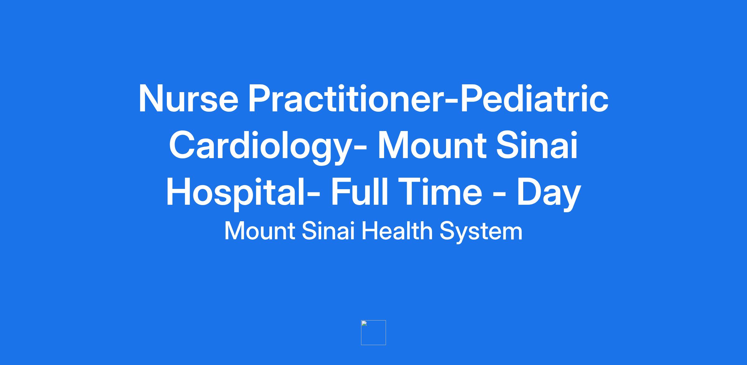 **Job Title - Nurse Practitioner-Pediatric Cardiology - Mount Sinai Hospital - Full Time - Day**