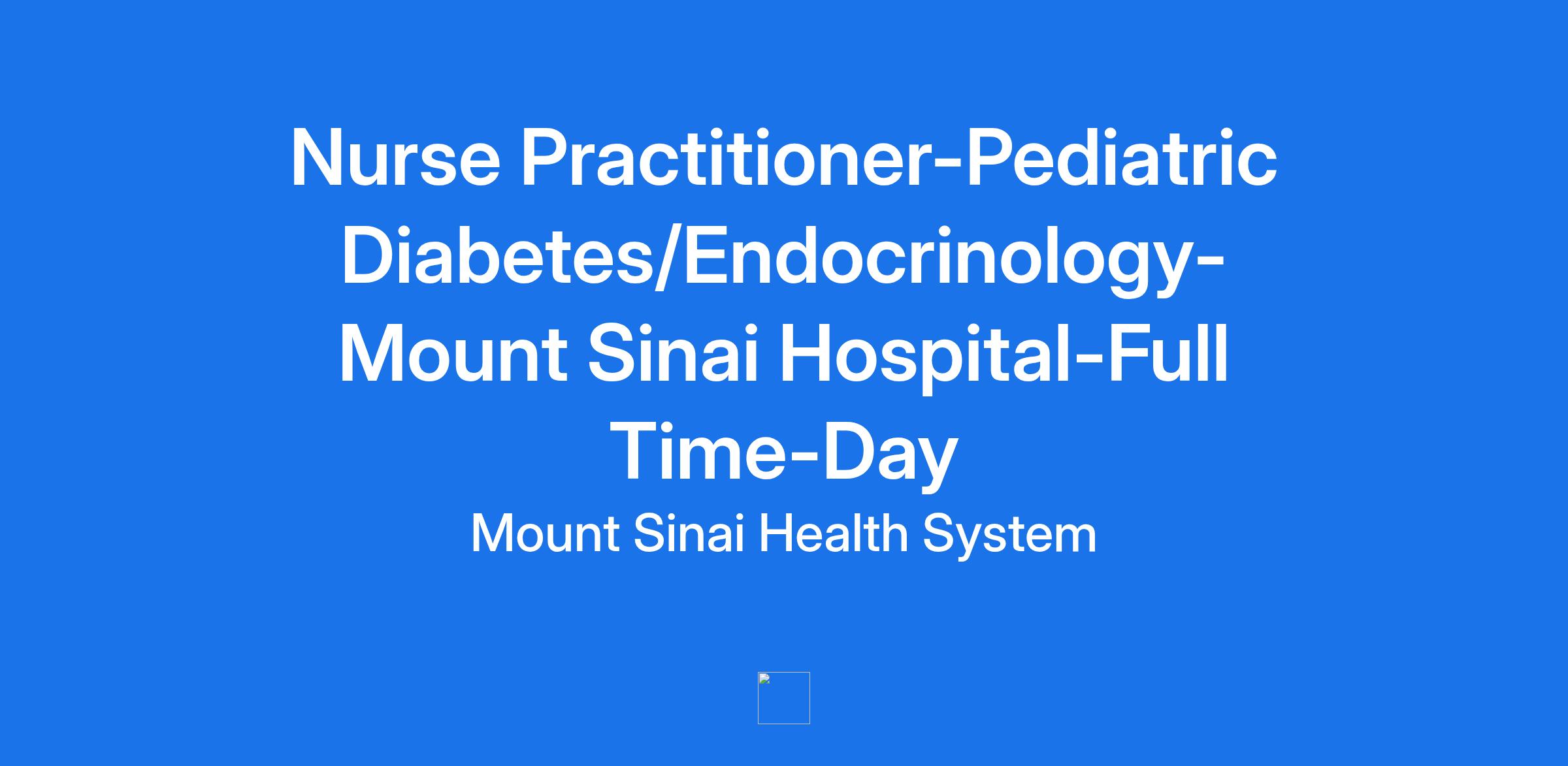 **Nurse Practitioner-Pediatric Diabetes/Endocrinology-Mount Sinai Hospital-Full Time-Day**