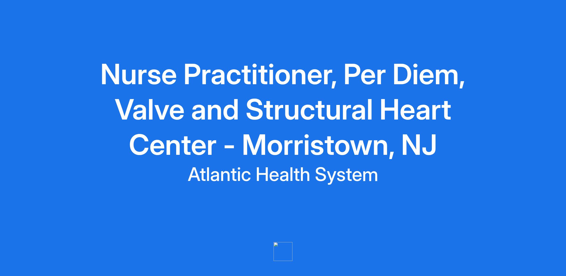 Atlantic Health is Seeking a Per Diem Nurse Practitioner for the Valve and Structural Heart Center at Morristown Medical Center