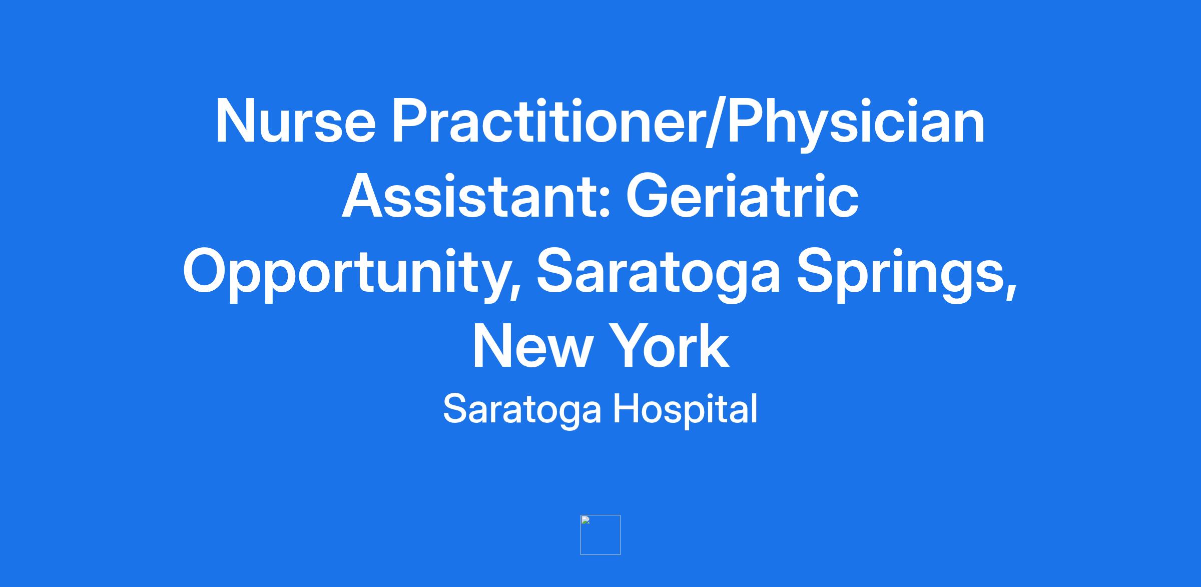 Nurse Practitioner/Physician Assistant: Geriatric Opportunity, Saratoga Springs, New York