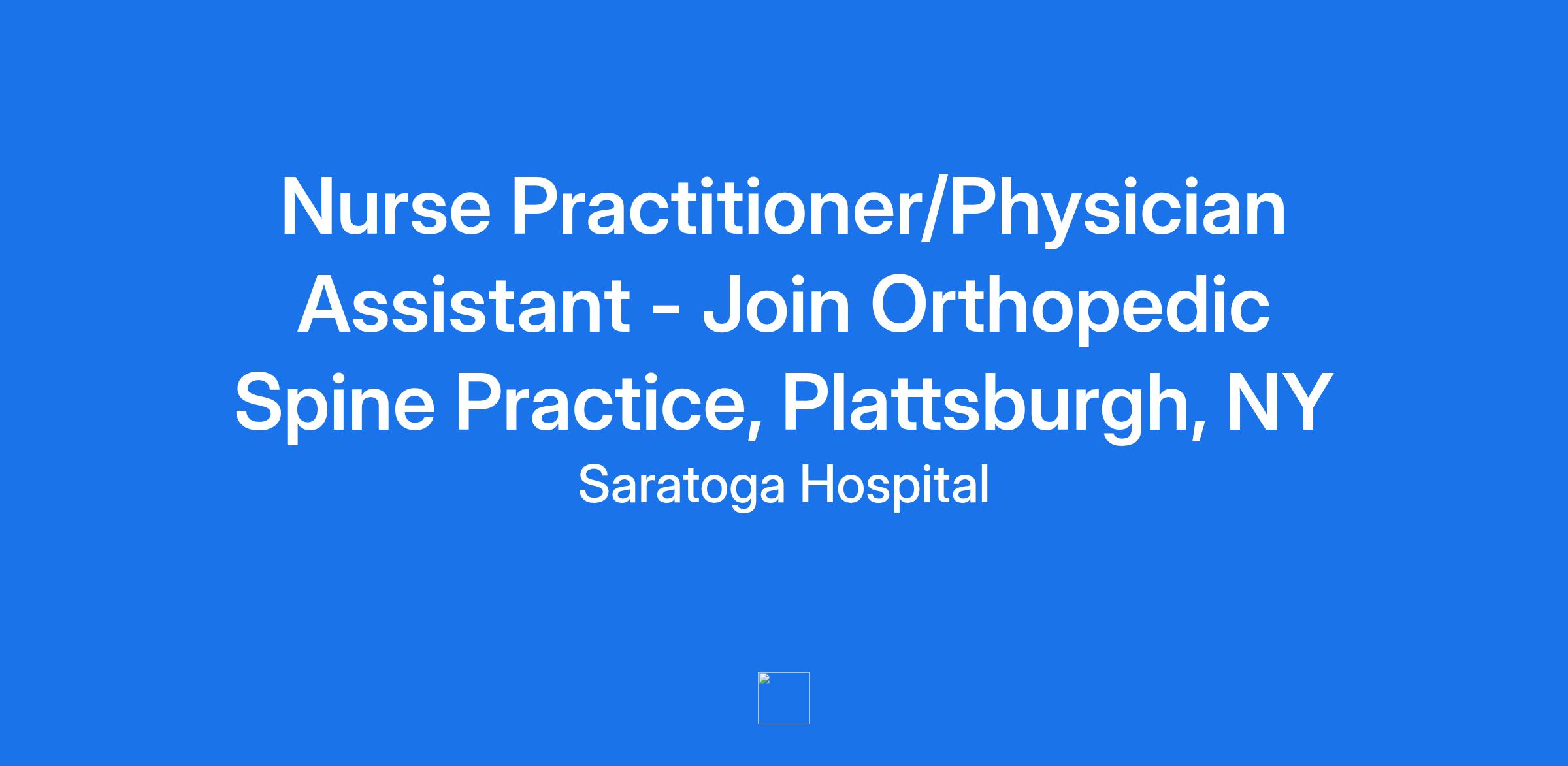 Saratoga Hospital Spine seeks an experienced Advanced Practice Provider for a full-time position to join a growing Spine Surgery Practice in our Plattsburgh, NY, office located at 16 De Grandpre Way Plattsburgh, NY 12901.
