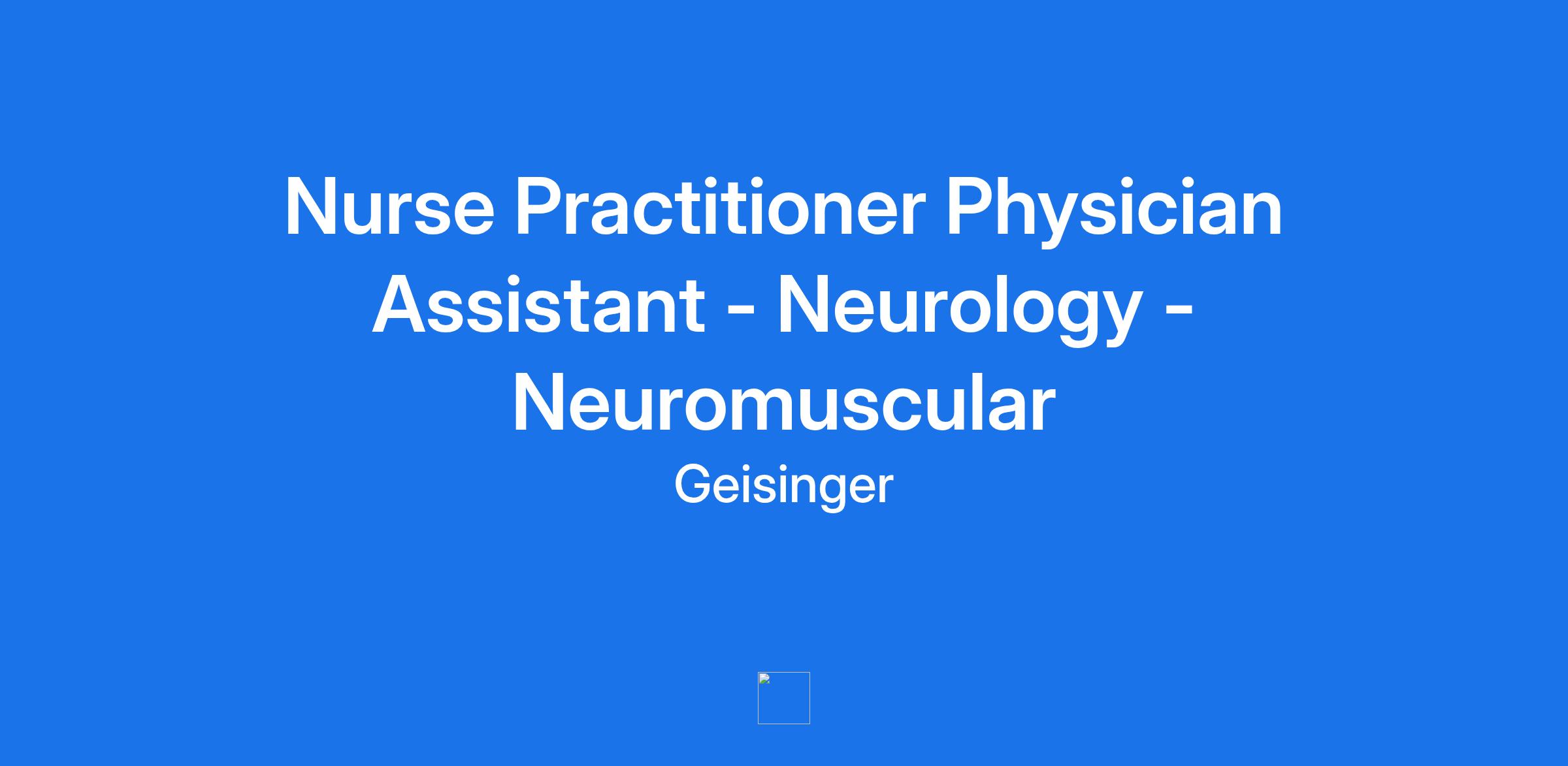 Nurse Practitioner Physician Assistant - Neurology - Neuromuscular