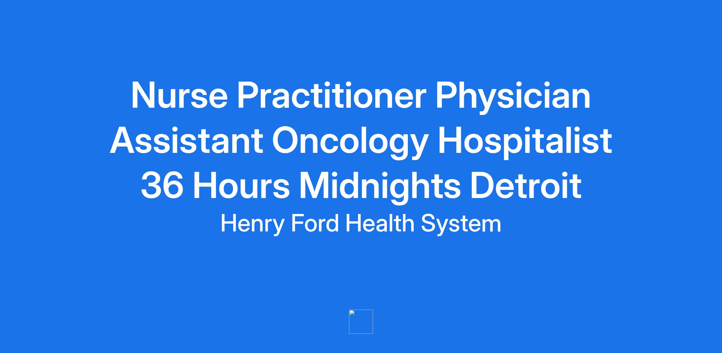 Nurse Practitioner Physician Assistant Oncology Hospitalist 36 Hours Midnights Detroit