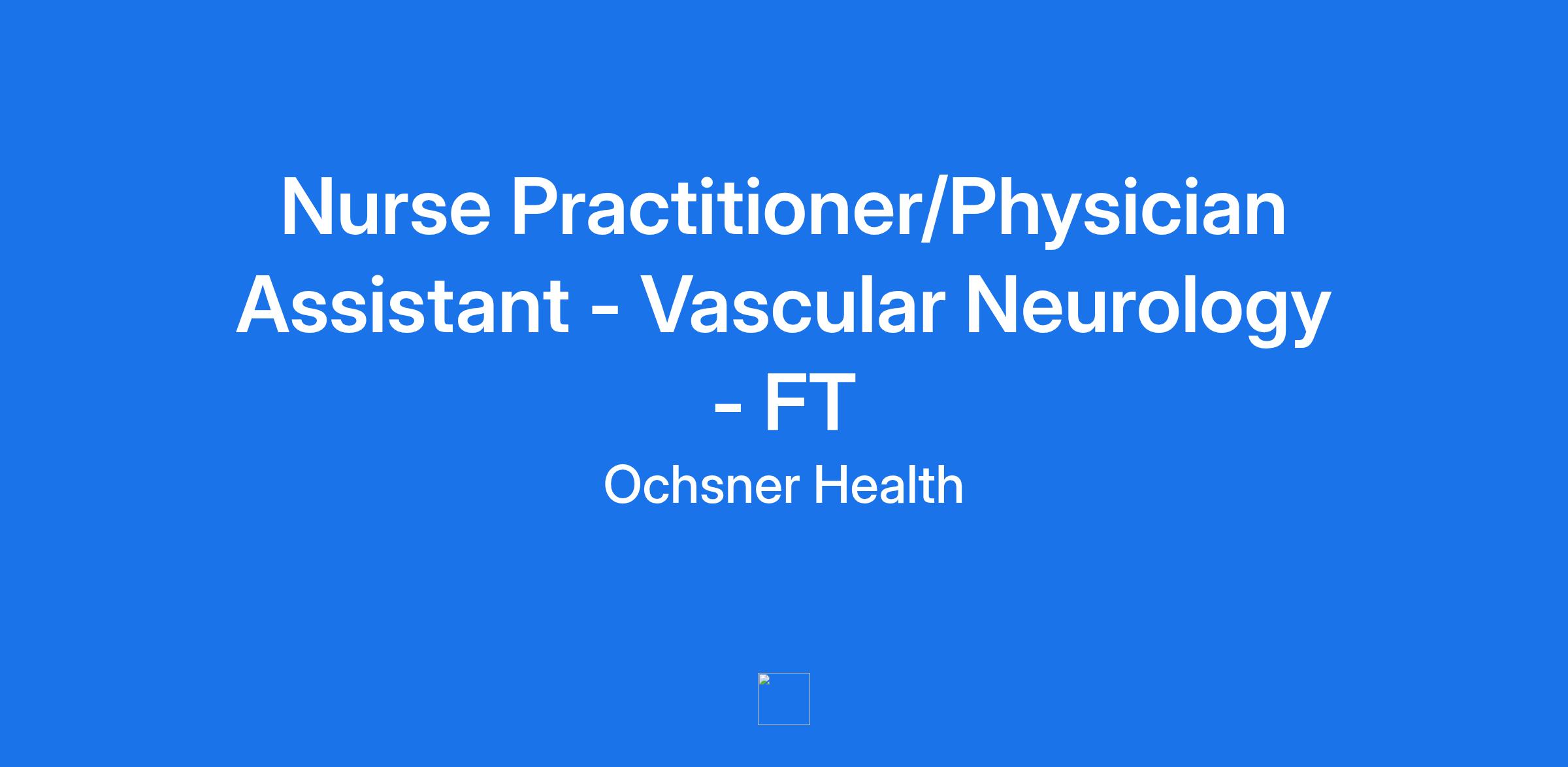 Nurse Practitioner/Physician Assistant - Vascular Neurology - FT