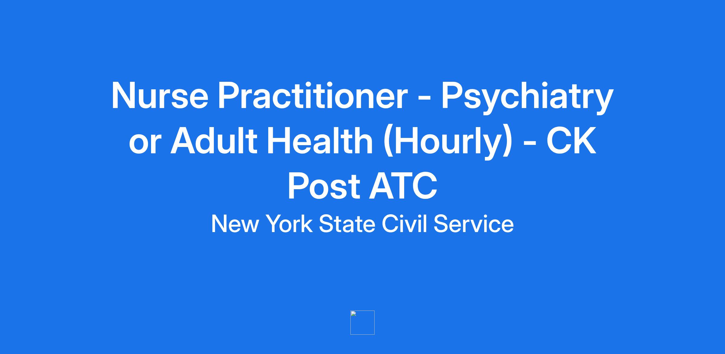 Title Nurse Practitioner - Psychiatry or Adult Health (Hourly) - CK Post ATC