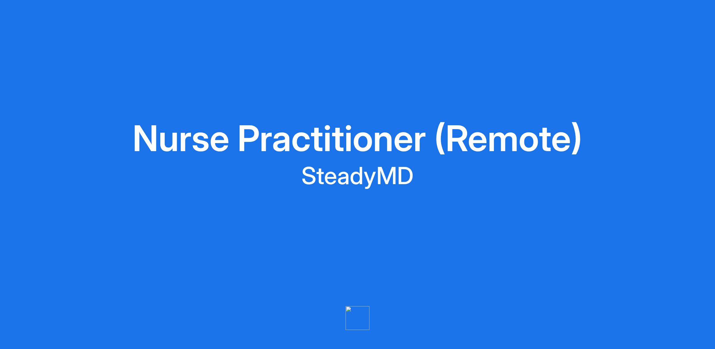 SteadyMD is excited to invite Nurse Practitioners with licensure and residency in at least one of the following states (AZ, CA, FL, GA, IL, MA, MI, NY, OH, PA, TX) for a potential role with our team.