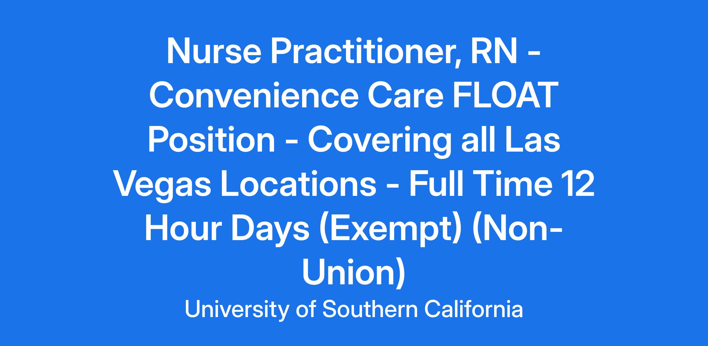 Nurse Practitioner, RN - Convenience Care FLOAT Position - Covering all Las Vegas Locations - Full Time 12 Hour Days (Exempt) (Non-Union)