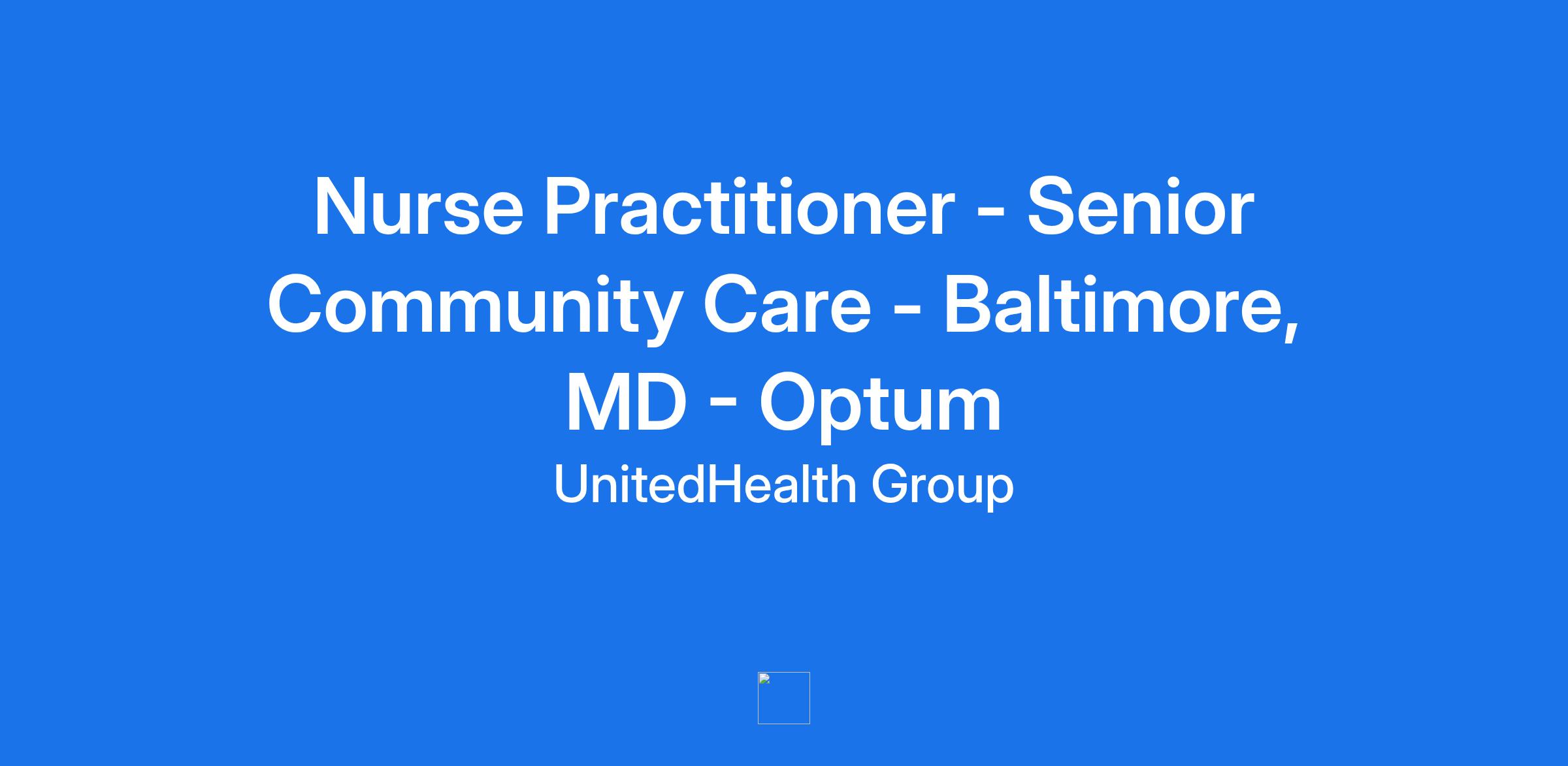 Nurse Practitioner - Senior Community Care - Baltimore, MD - Optum