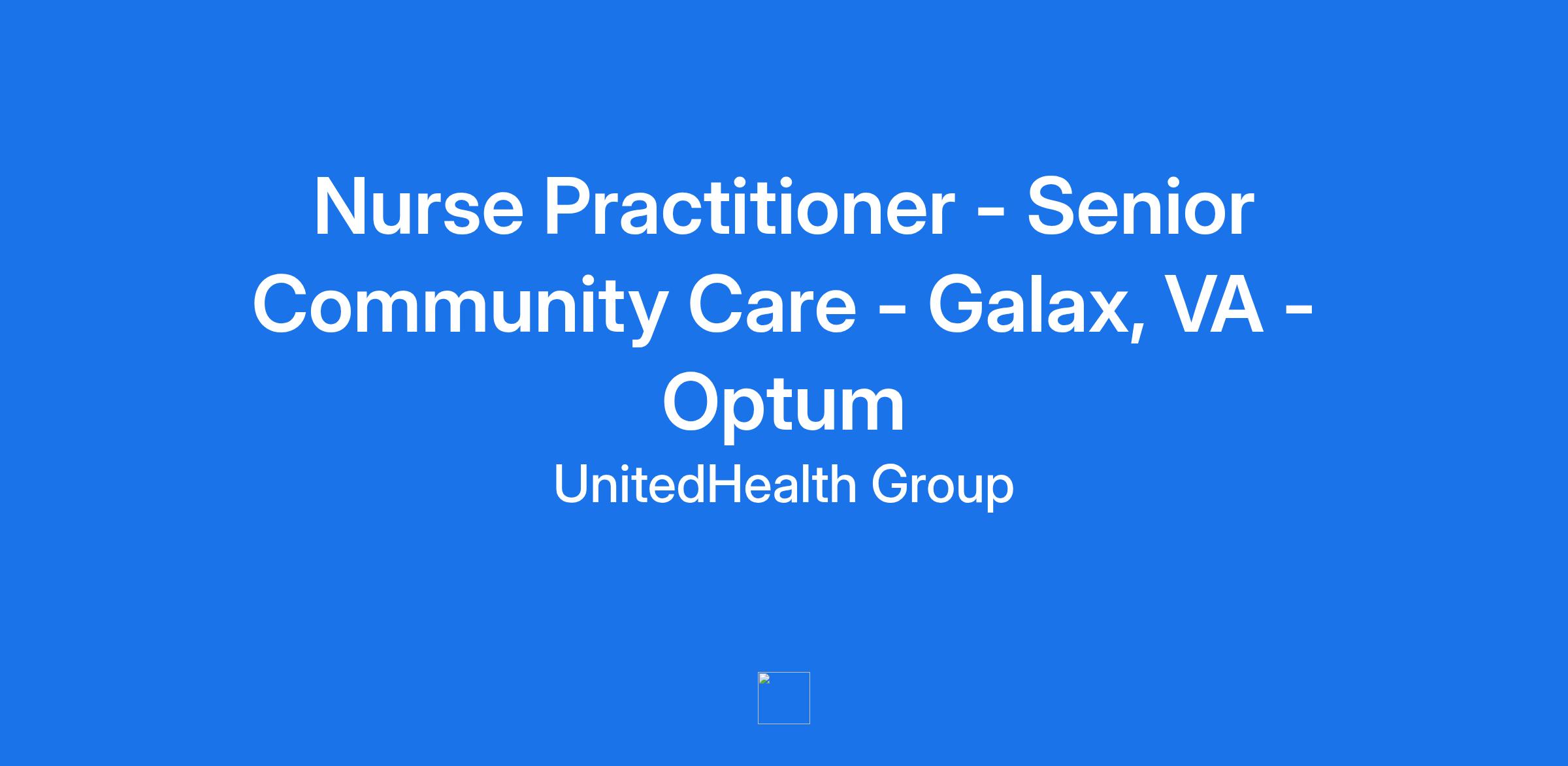 Nurse Practitioner - Senior Community Care - Galax, VA - Optum