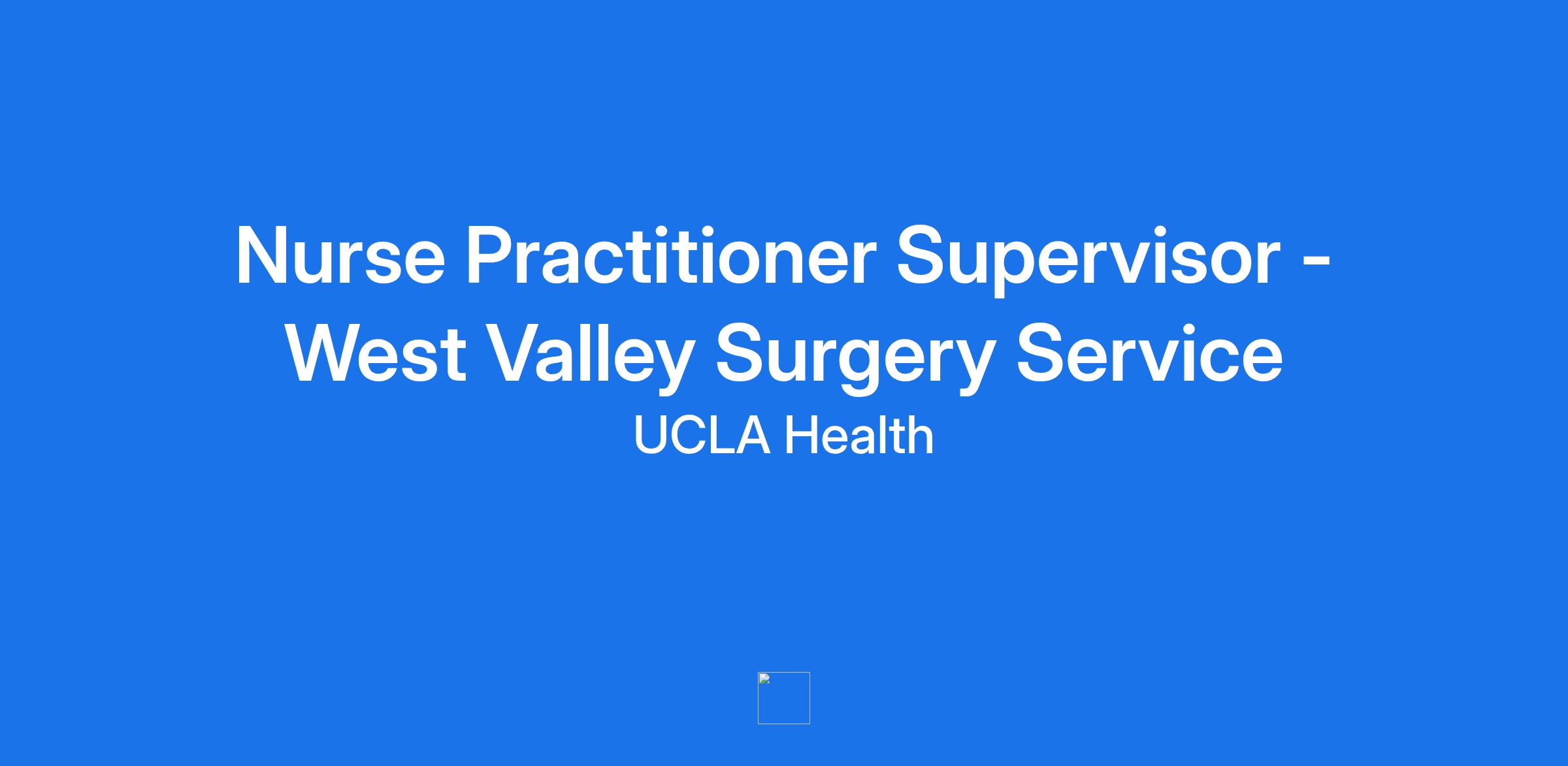 Nurse Practitioner Supervisor - West Valley Surgery Service