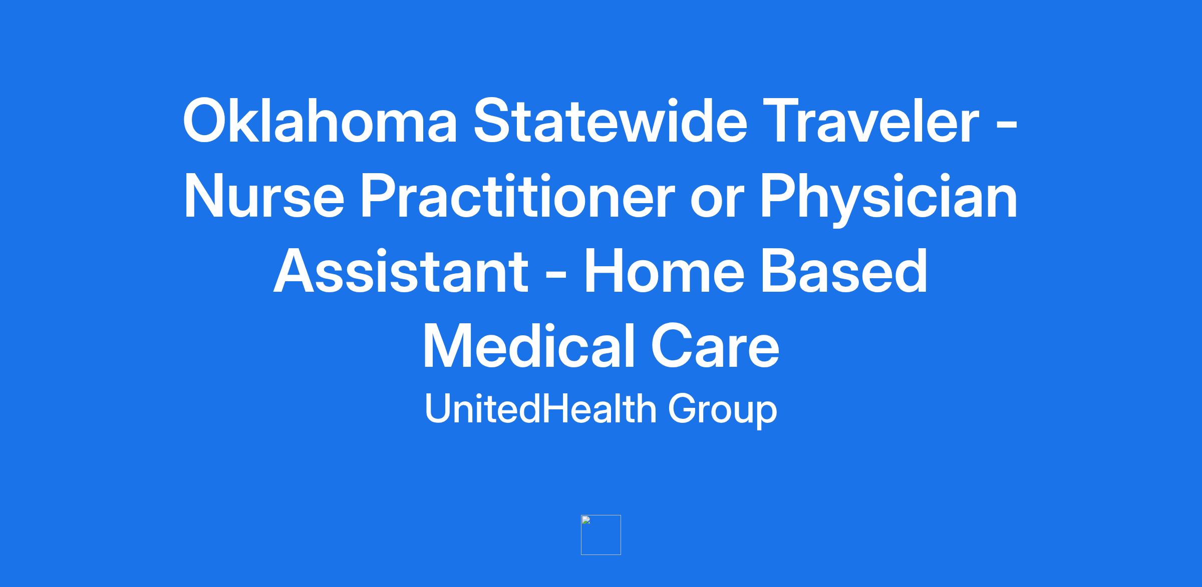 **Home Base Medical Care, part of the Optum family of businesses, is seeking a Nurse Practitioner or Physician Assistant to join our team in Oklahoma. Optum is a clinician-led care organization that is changing the way clinicians work and live. **