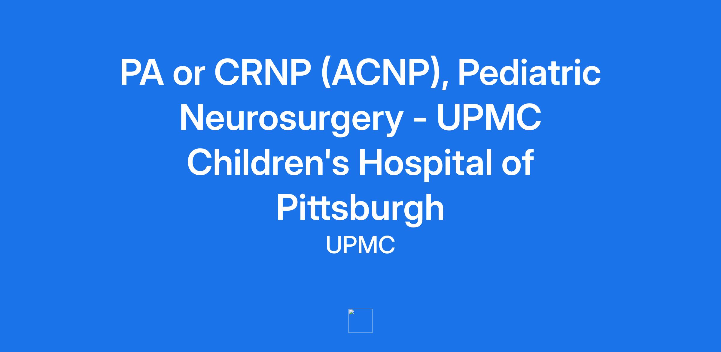 PA or CRNP (ACNP), Pediatric Neurosurgery - UPMC Children's Hospital of Pittsburgh