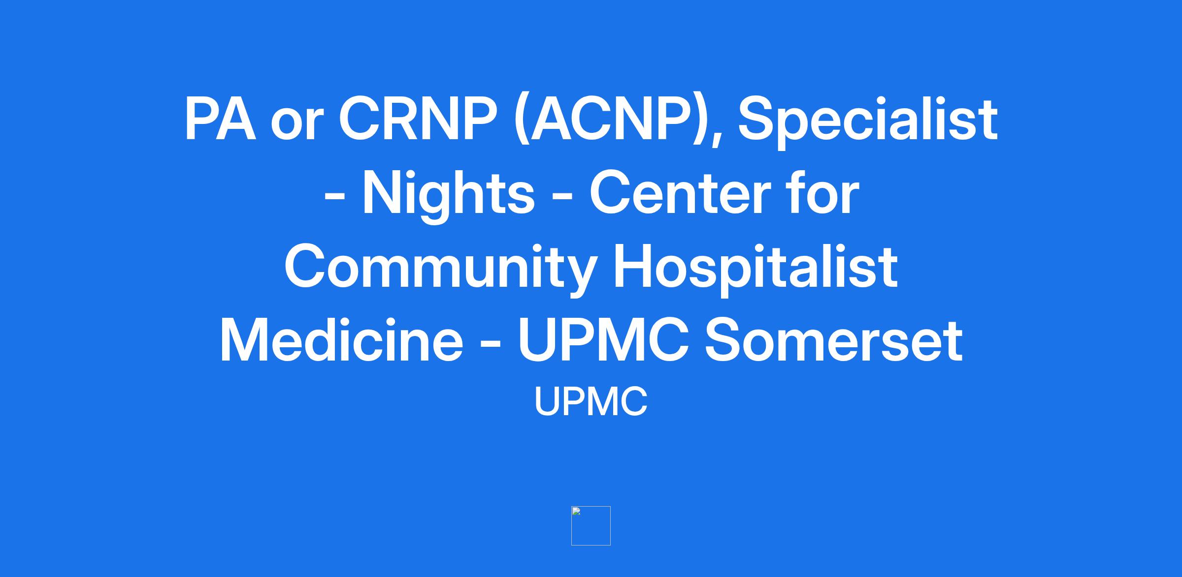 PA or CRNP (ACNP), Specialist - Nights - Center for Community Hospitalist Medicine - UPMC Somerset