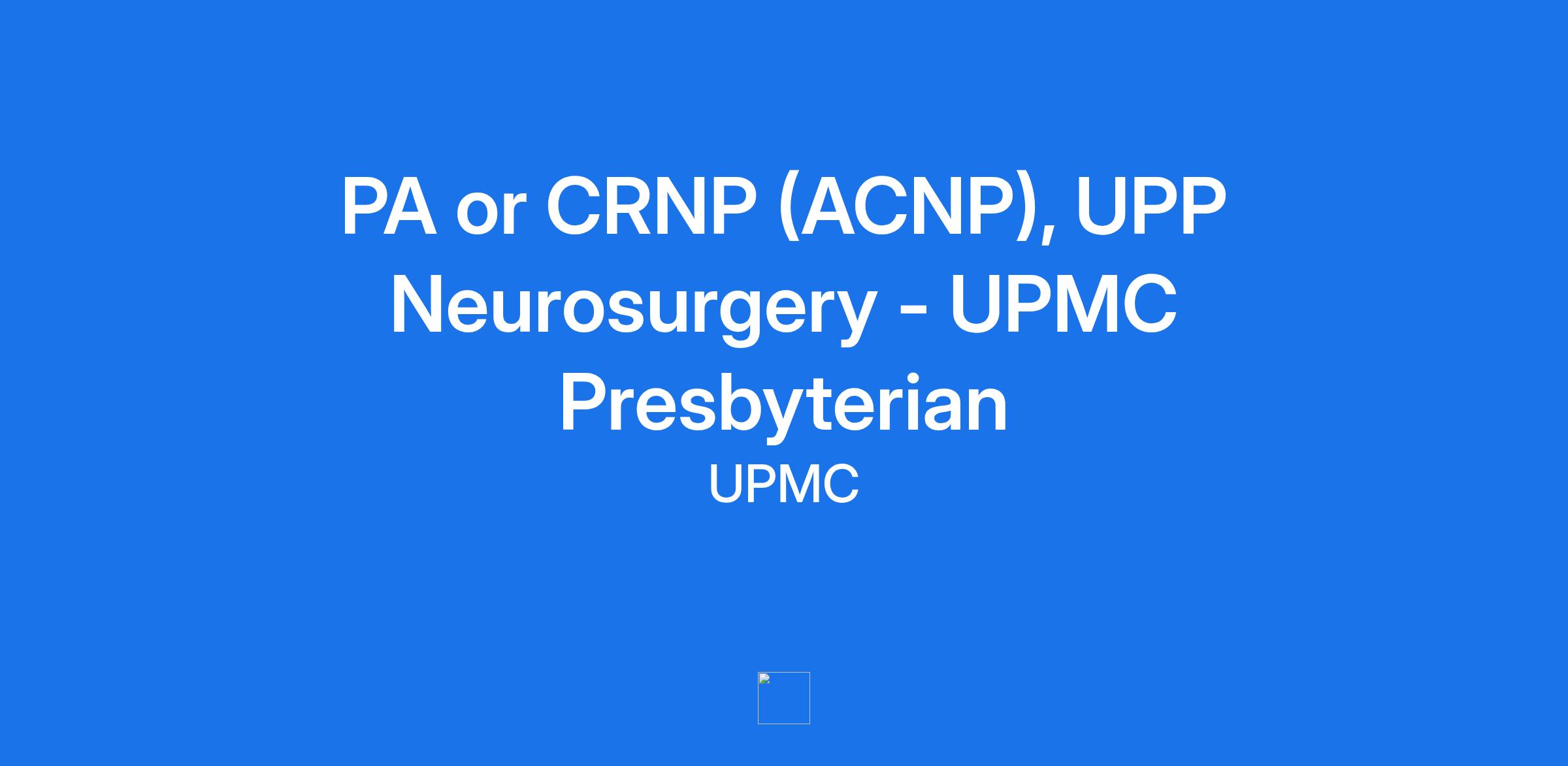 PA or CRNP (ACNP), UPP Neurosurgery - UPMC Presbyterian