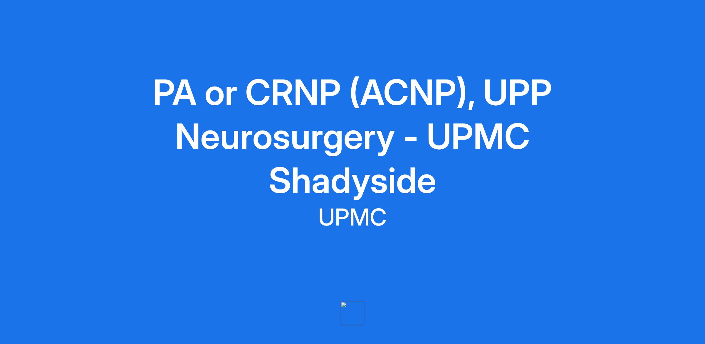 PA or CRNP (ACNP), UPP Neurosurgery - UPMC Shadyside