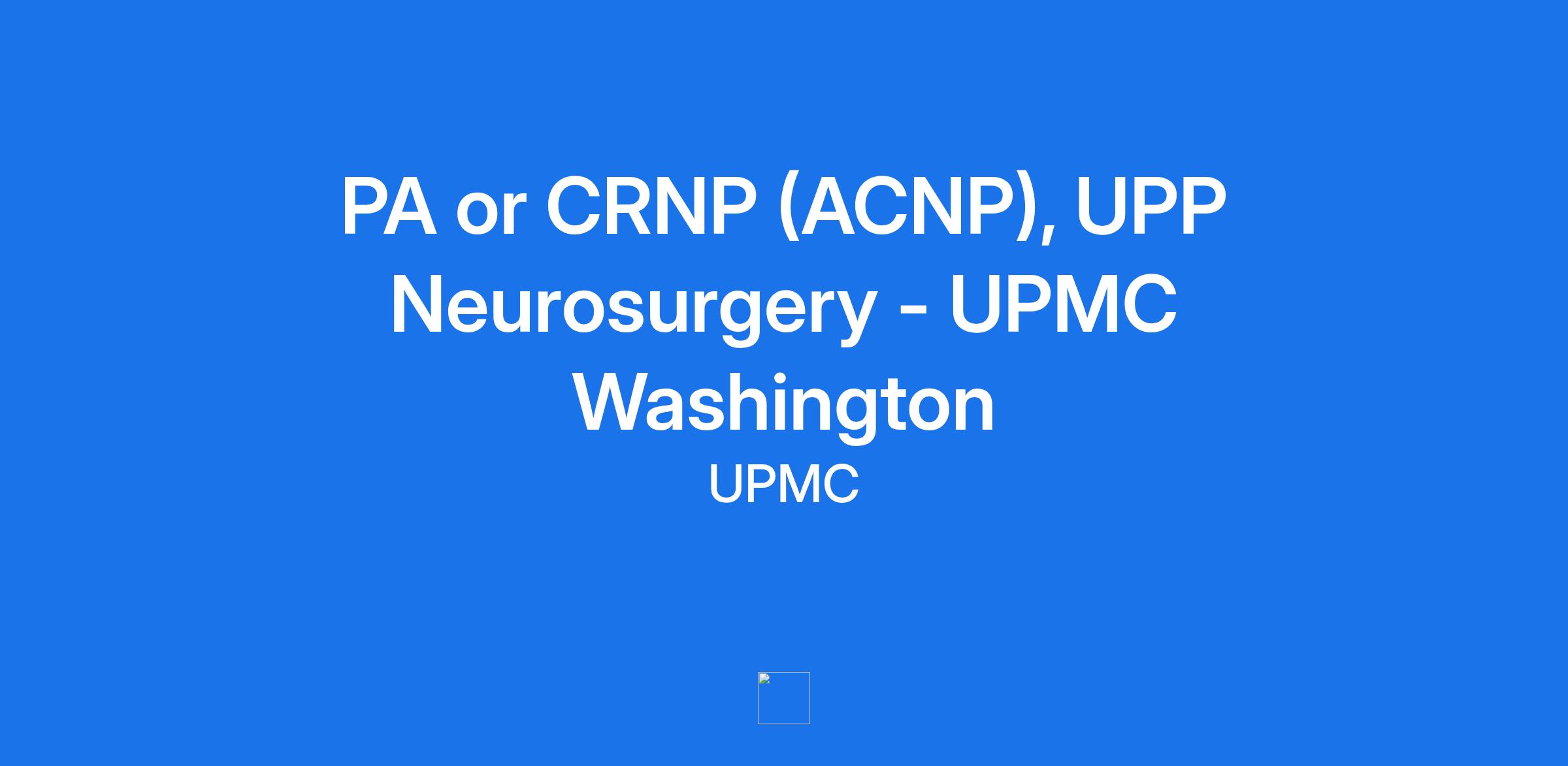 PA or CRNP (ACNP), UPP Neurosurgery - UPMC Washington