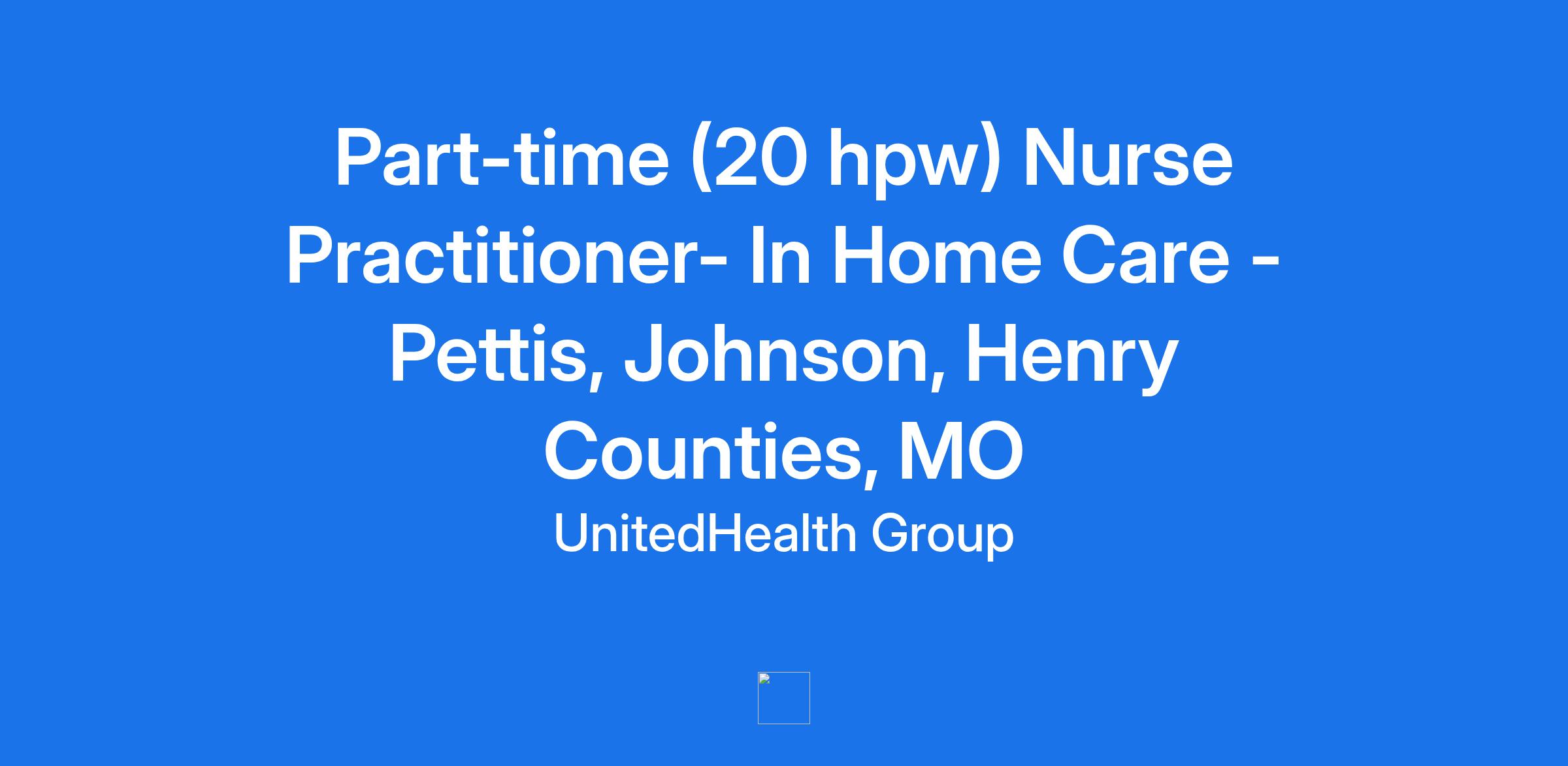 **Optum is seeking a Part-time (20 hpw) Nurse Practitioner to join our Home-based Medical Care team in Pettis, Johnson and Henry Counties, MO. Optum is a clinician-led care organization, that is creating a seamless health journey for patients across the care continuum.**