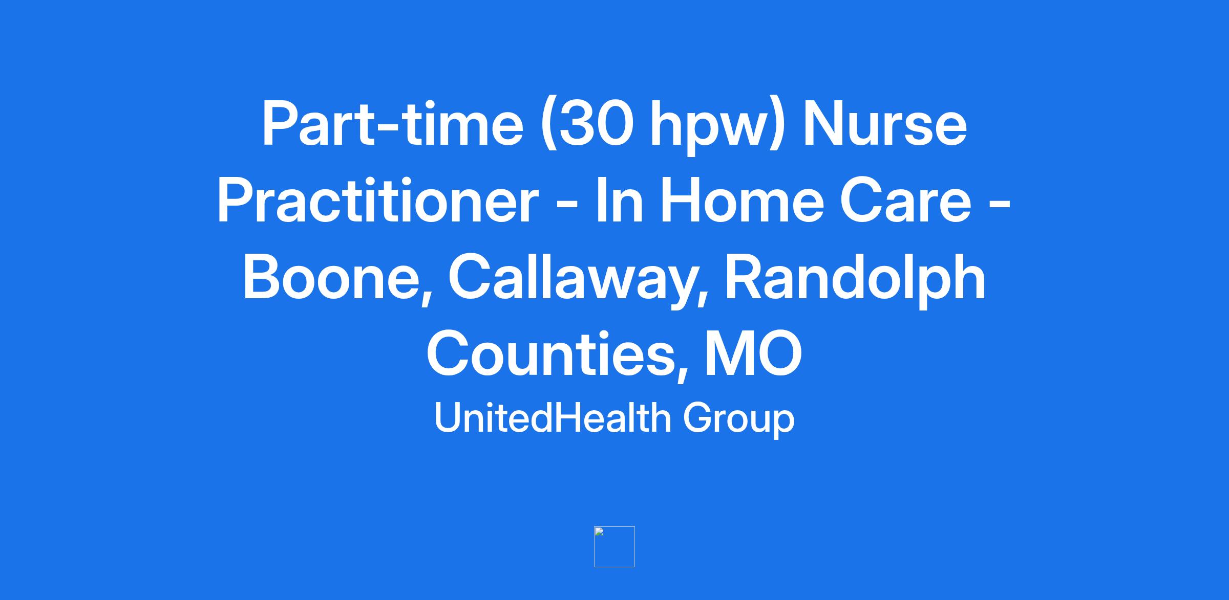 **Optum is seeking a Part-time (30 hpw) Nurse Practitioner to join our Home-based Medical Care team in Boone, Callaway and Randolph Counties, MO. Optum is a clinician-led care organization, that is creating a seamless health journey for patients across the care continuum.**