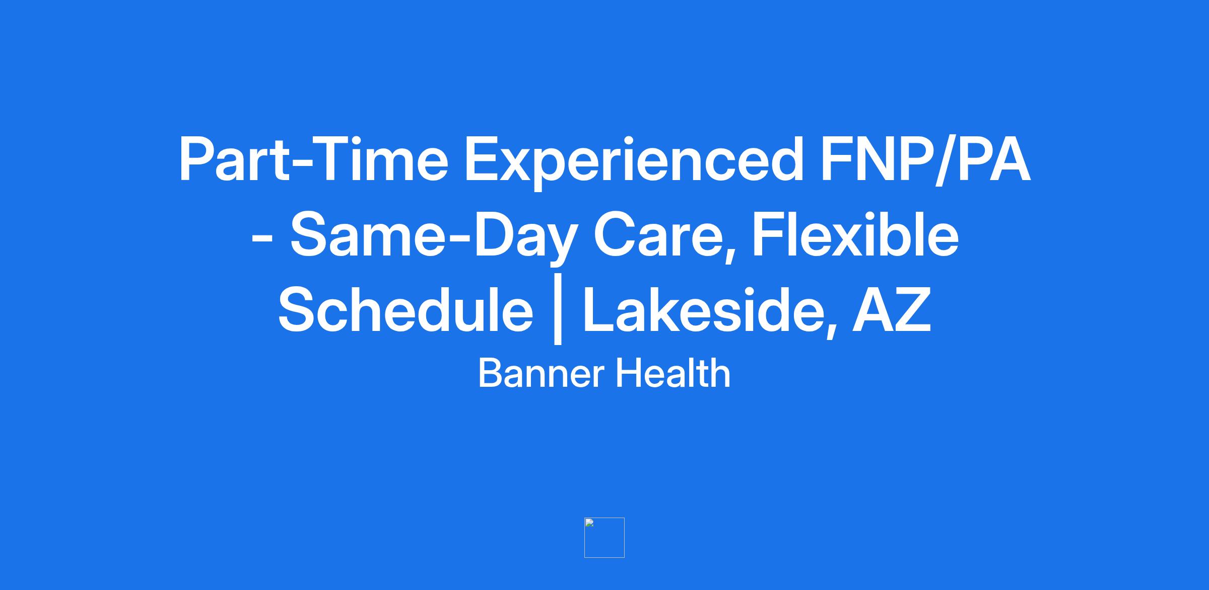 **Part-Time FNP or PA | Same Day Care Lakeside, AZ | Flexible Schedule**