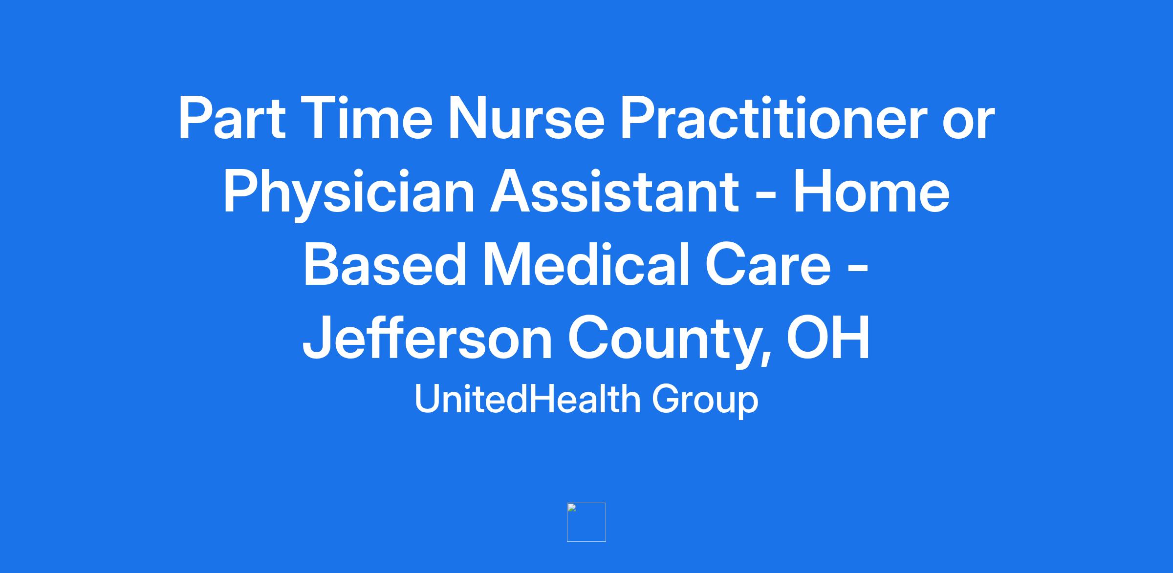 **Home Base Medical Care, part of the Optum family is seeking a Part Time Nurse Practitioner or Physician Assistant to join our Home-based Medical Care team in** **Jefferson County, OH** **. Optum is a clinician-led care organization that is changing the way clinicians work and live. **