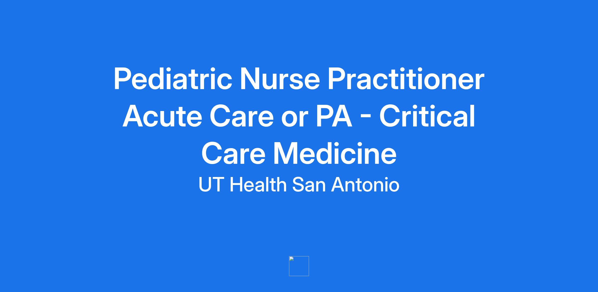Pediatric Nurse Practitioner Acute Care or PA - Critical Care Medicine