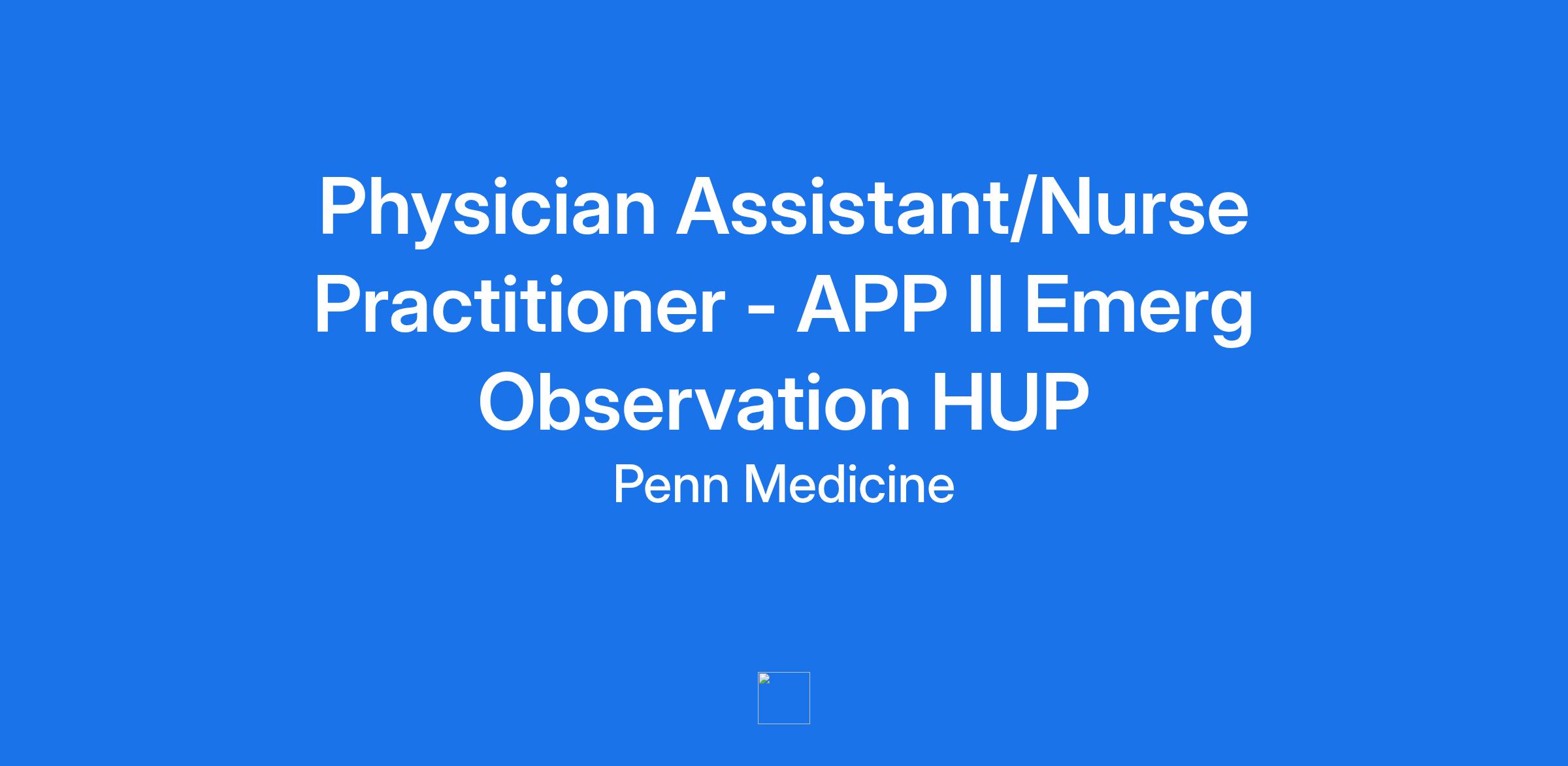 Physician Assistant/Nurse Practitioner - APP II Emerg Observation HUP